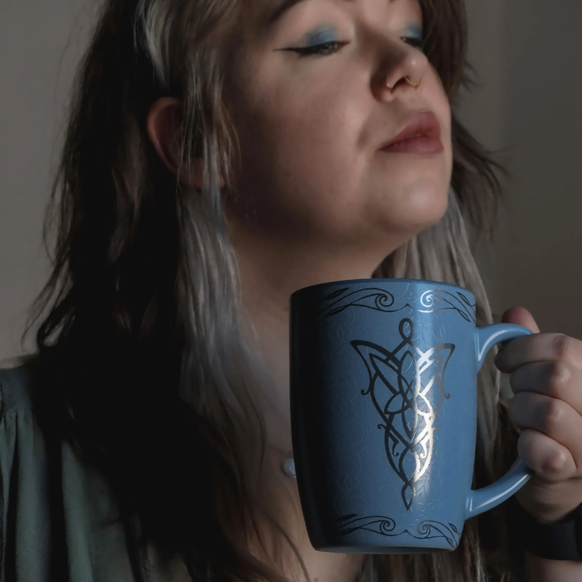 Kan jouw ochtend wel wat Rivendel gebruiken? Deze mok met officiële In de Ban van de Ring-licentie brengt elfen-elegantie naar je bureau. Het reliëf-embleem met logo schittert zilverkleurig op diepblauw — bijna mithril, maar dan koffievriendelijk. Met 400 ml is er genoeg voor koffie, thee of een slok moed voor je volgende queeste.