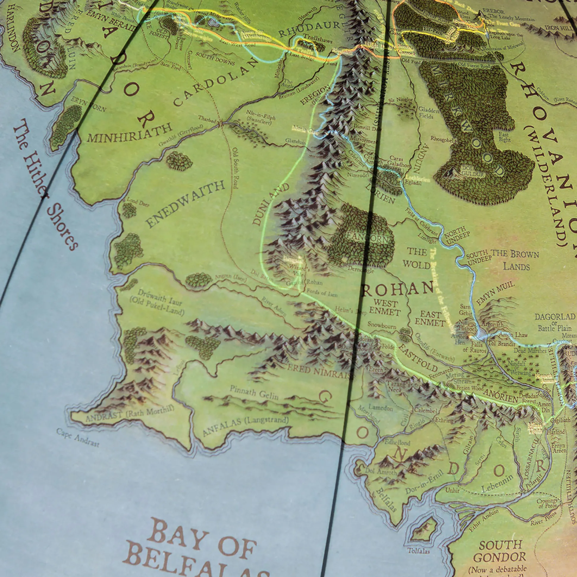 - toont de volledige topografie van Tolkiens Midden-aarde wereld