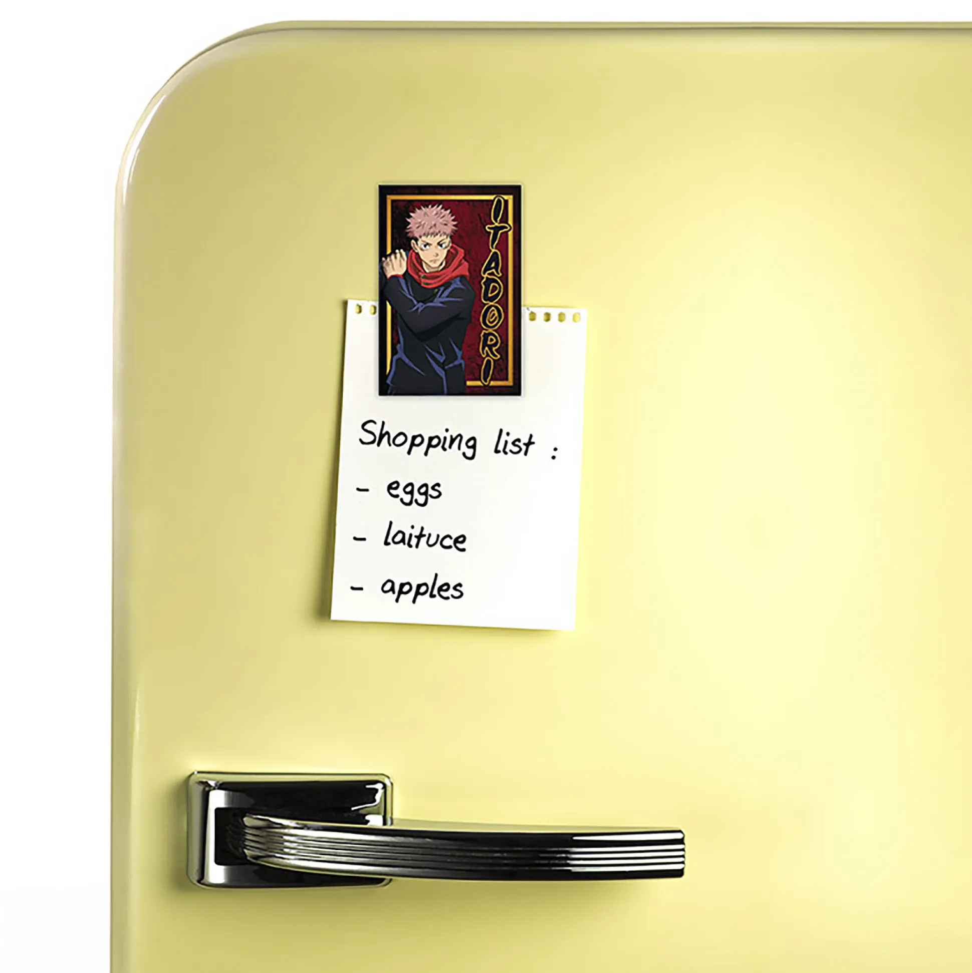 Haal Yuji Itadori uit Jujutsu Kaisen naar je magneetwand. Deze officieel gelicentieerde magneet toont Yuji in actie en pimpt je keuken, kantoor of kluisje. Het magnetische oppervlak bedekt de volledige achterkant, dus je boodschappenlijstjes, tickets en geheime missies blijven keurig hangen. Met 5,5 x 8 x 0,2 cm is hij compact en klaar om overal te plakken. Perfect als klein fan-cadeau of als snelle upgrade voor instant anime-stijl op je koelkast.