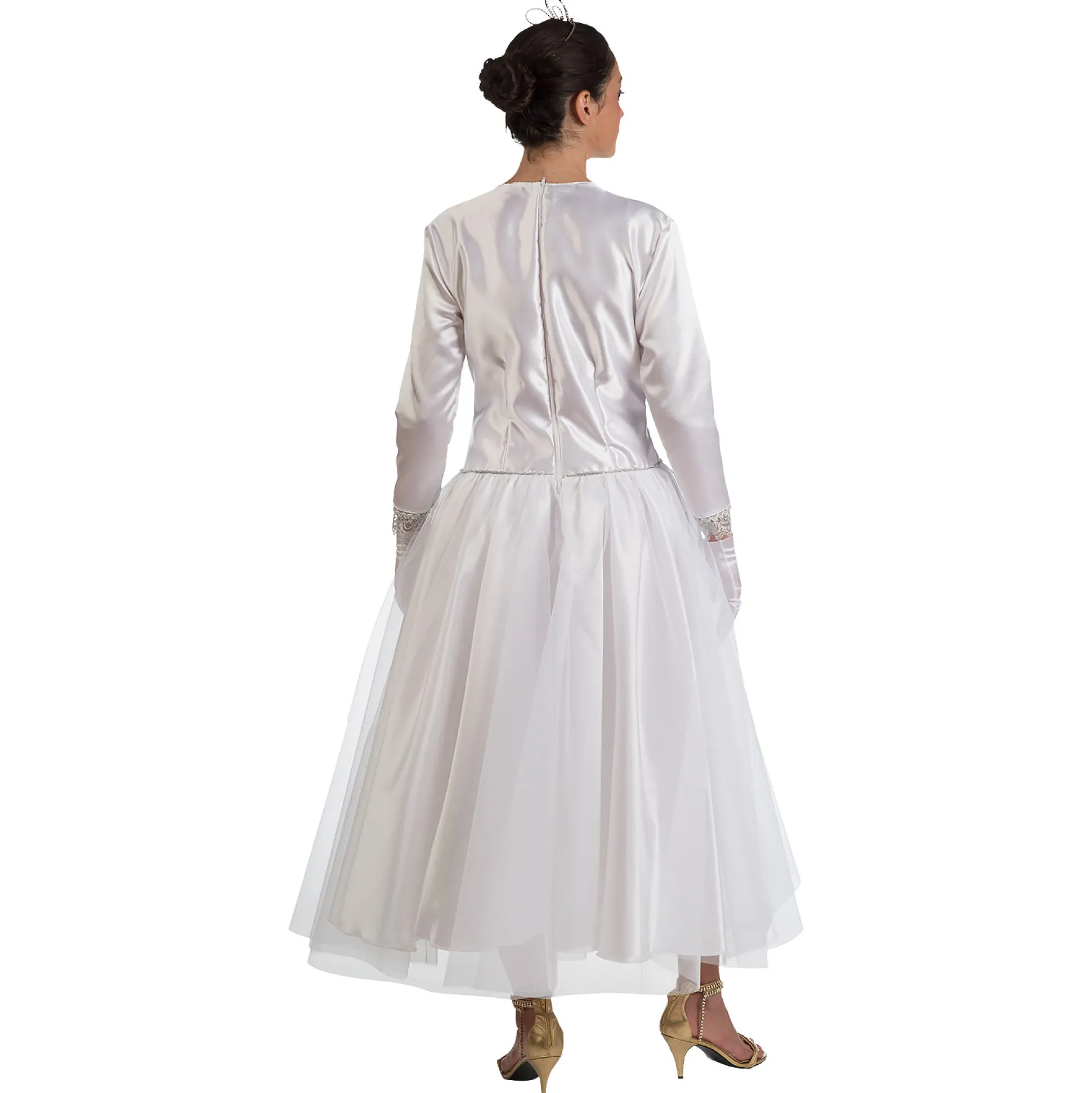 - ritssluiting aan de achterkant, wijd uitlopende tule rok