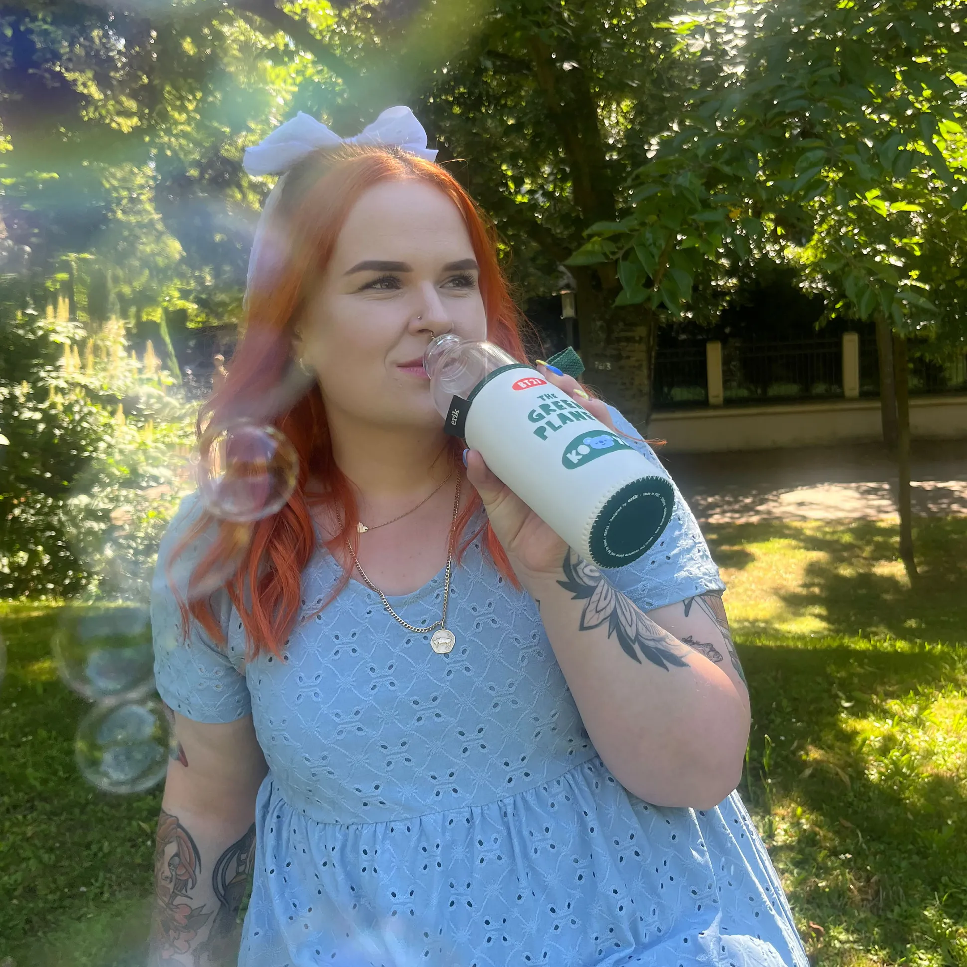 - Flessentas met draaglus in Koya design en ‘The Green Planet’ opschrift