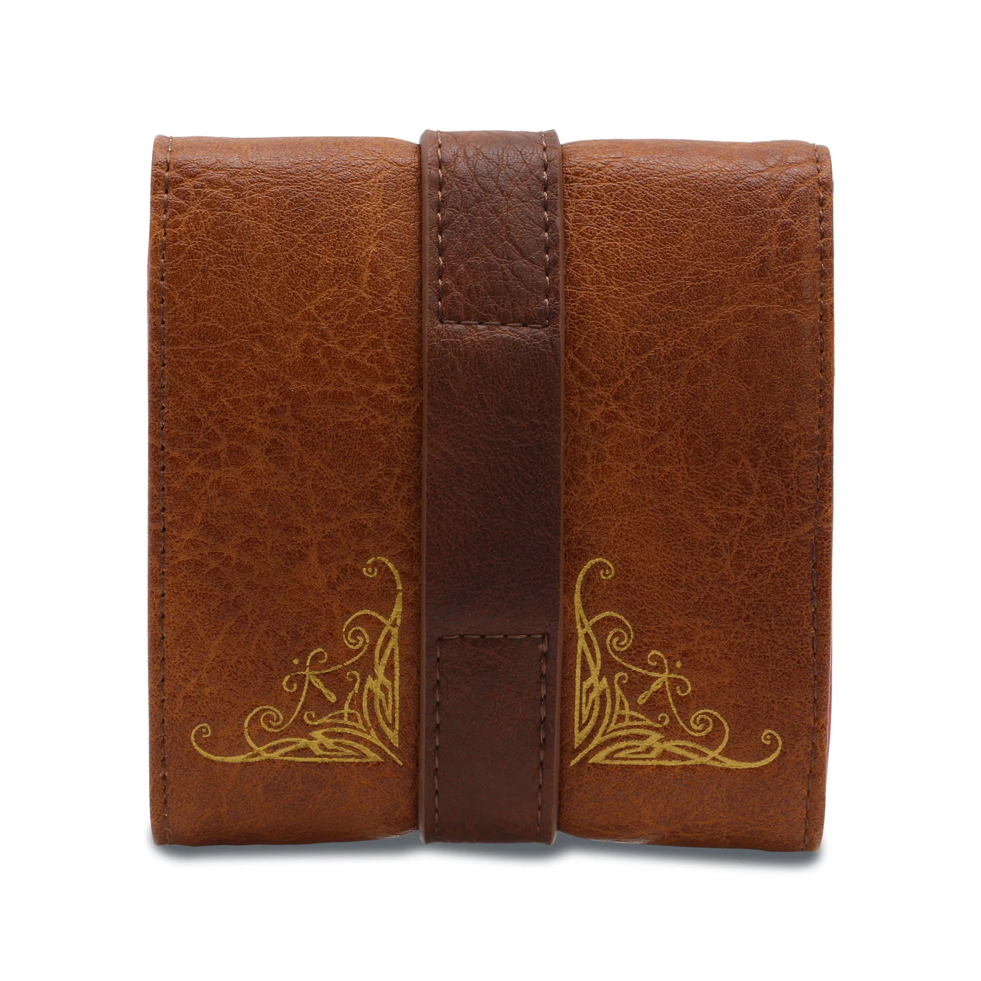 Je kostbaarste verdient een waardig schuilplaatsje: deze officieel gelicentieerde In de Ban van de Ring-portemonnee houdt je muntjes, briefgeld en pasjes bij elkaar – zonder duistere bijwerkingen. De drukknoopsluiting draagt het embleem van De Ene Ring en binnenin vind je een reliëflogo plus het motief van het Reisgenootschap. Dankzij de riemlus draag je ’m als een echte ranger gewoon aan je riem – perfect voor festivals, cons of elke dag. 5 kaartsleuven, een apart muntvak met drukknoop en afmetingen van 10,5 x 3 x 11 cm maken het af. Grijp ’m voordat Gollum dat doet.