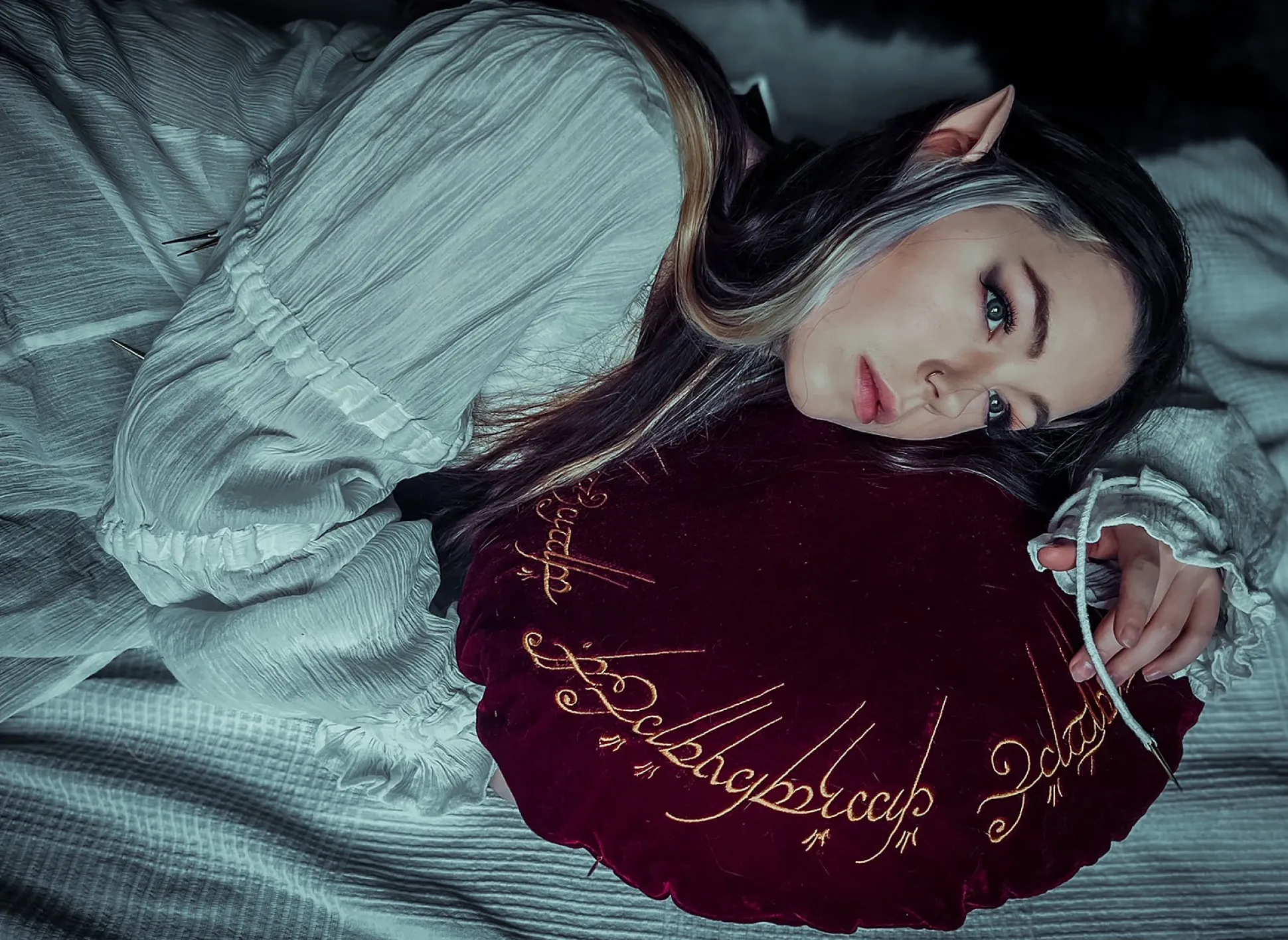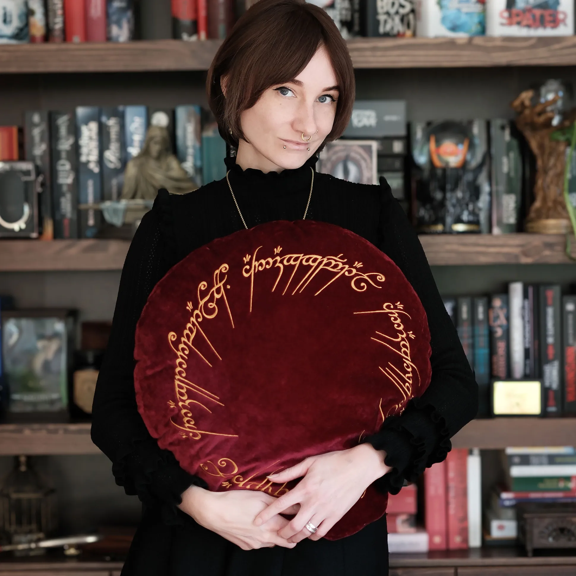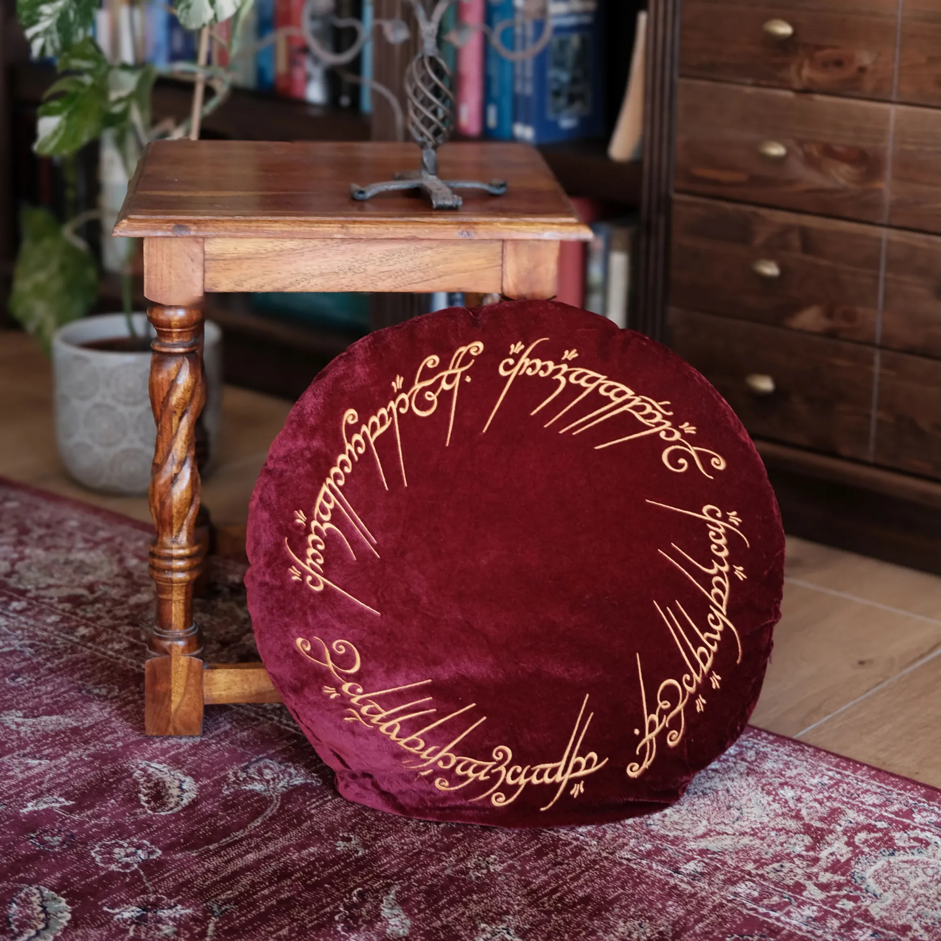 Wat heeft dit te maken met het Ene Kussen? Nou, dit machtige sieraad uit het Elfenwoud is zoiets als de goede versie van de ring! Net als zijn kwade broer is het onberispelijk mooi, niet in de laatste plaats door de liefdevol geborduurde ringinscriptie. De edele fluwelen stof is bijzonder zacht en geeft het kussen een hoogwaardig karakter. Of het Ene kussen überhaupt bevuild kan worden, kunnen we vanwege zijn magische eigenschappen niet definitief beoordelen. Maar als dat toch gebeurt, kan de hoes verwijderd en gewassen worden.