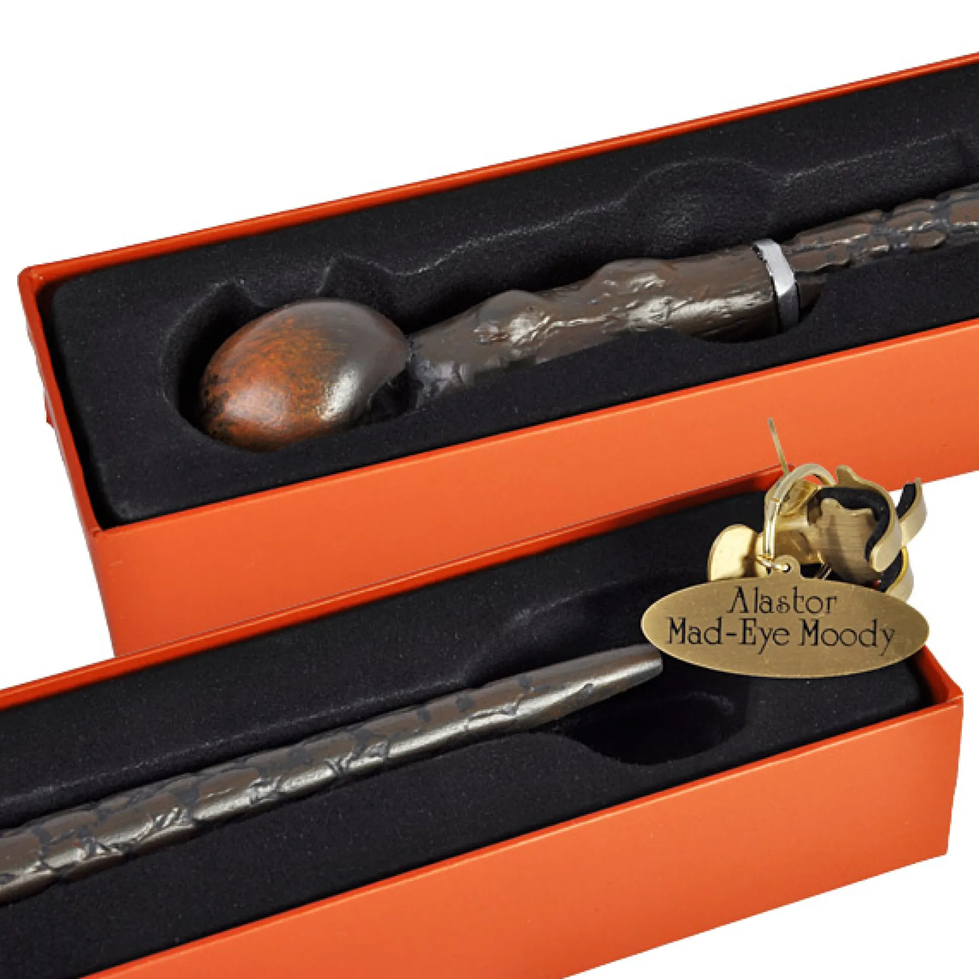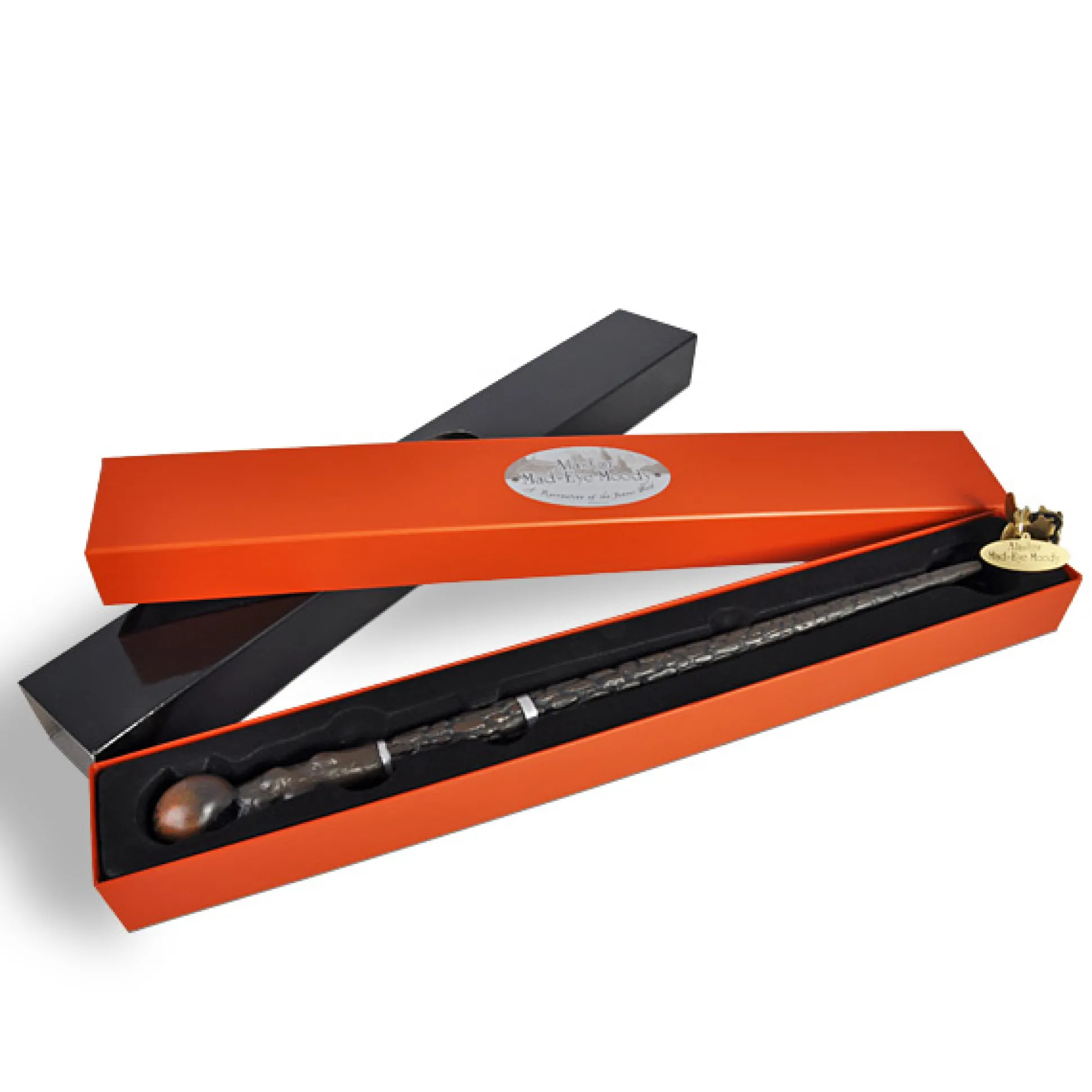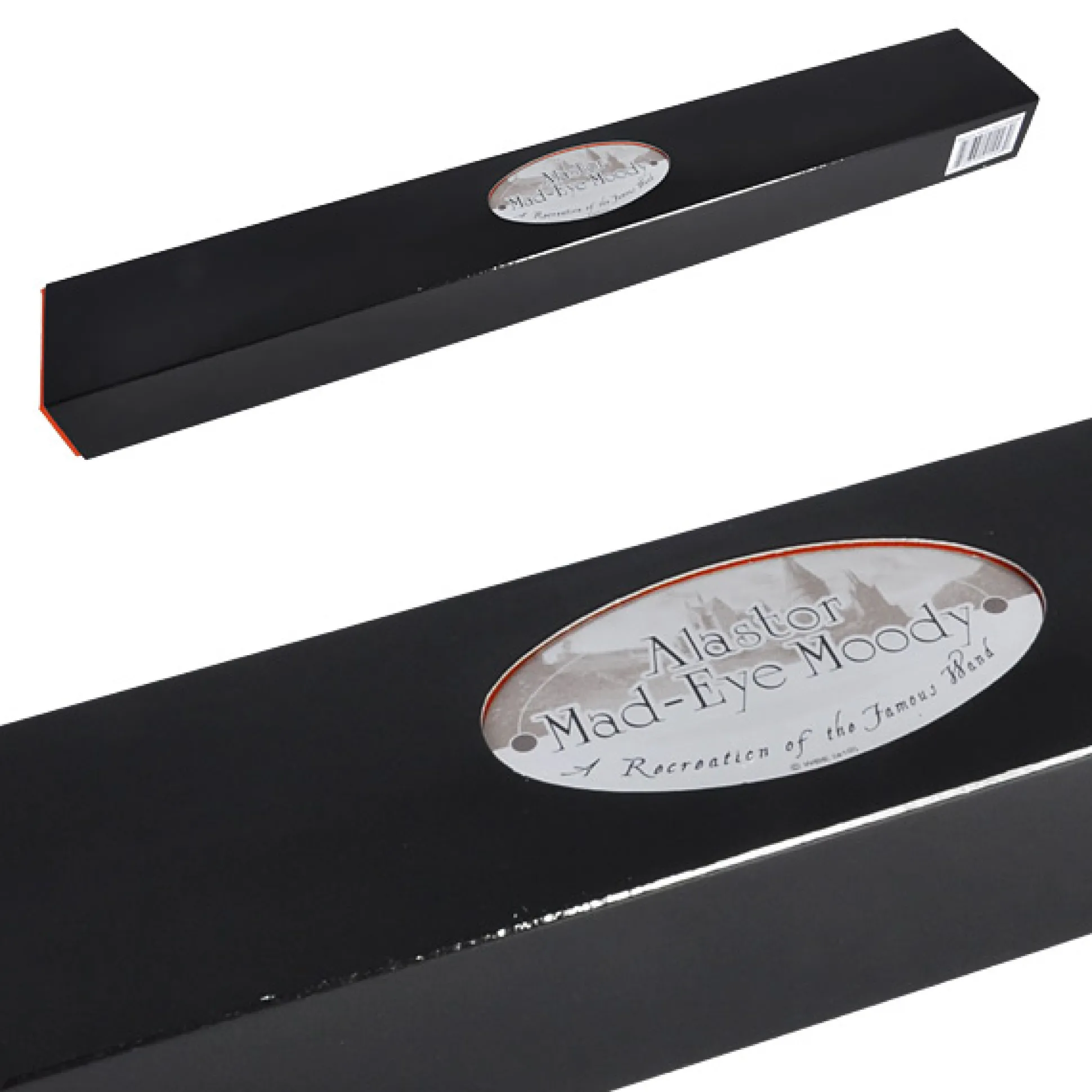 De toverstok van Mad-Eye is lang en dik (dikste deel van de toverstok ca. 2 cm, bol op het handvat ca. 3 cm) en daardoor zwaar. Het heeft de structuur van ruwe boombast en is donkerbruin. Voor het handvat zitten twee zilverkleurige decoratieve randen. Het handvat zelf is minder gestructureerd maar golvend. Het lijkt op een knoestige oude boom. Aan het uiteinde van het handvat zit een bol die perfect in de palm van je hand past.