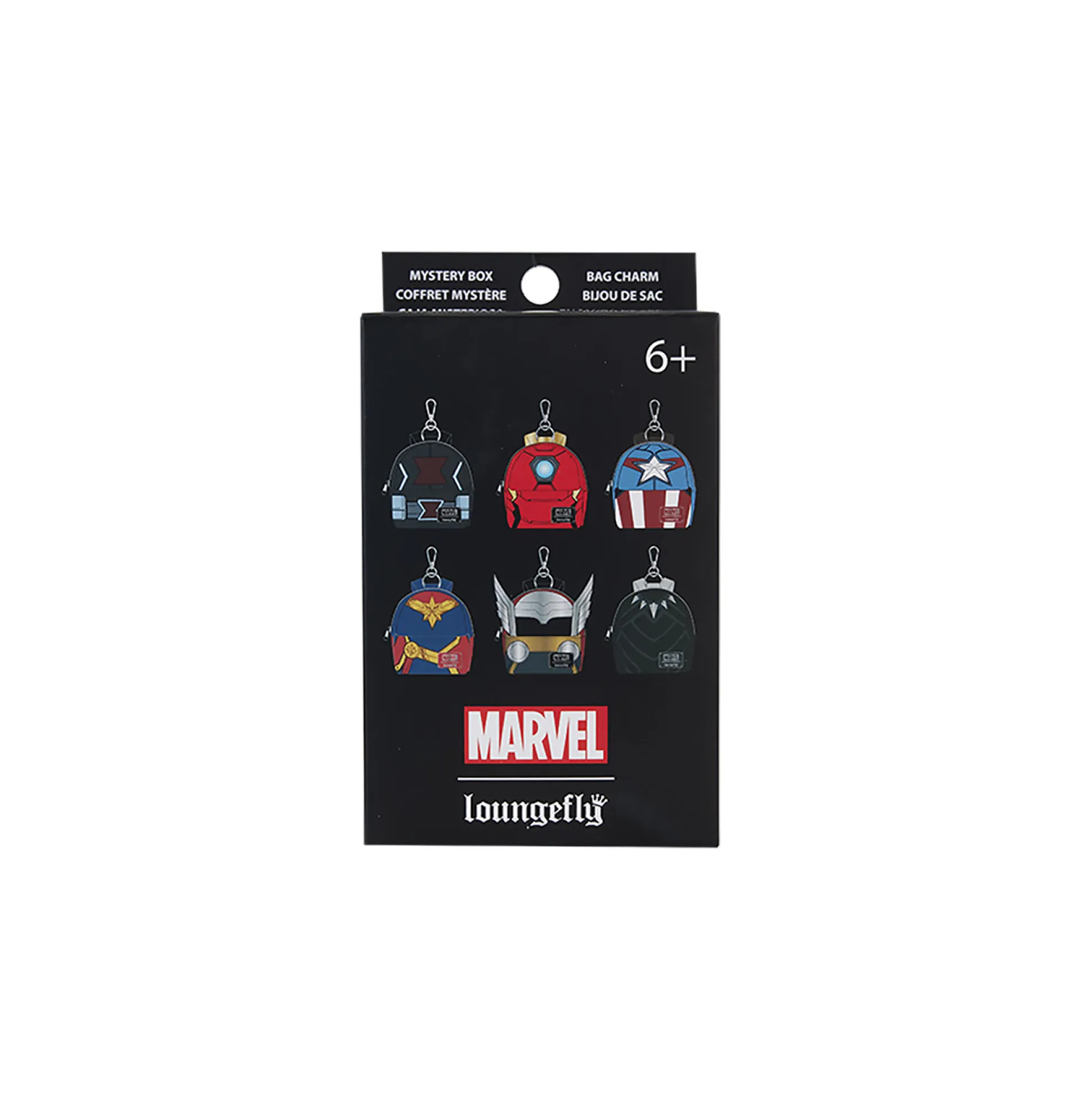 Avengers, assemble… aan je sleutelbos! Officieel gelicentieerde Marvel‑sleutelhanger met een piepkleine Loungefly mini‑rugzak uit de serie “Avengers Cosplay Mini Backpack Mystery Box Keychains”. In elke box zit één van zes designs: Black Widow, Captain America, Black Panther, Thor, Iron Man of Captain Marvel — keuze gebeurt willekeurig.
