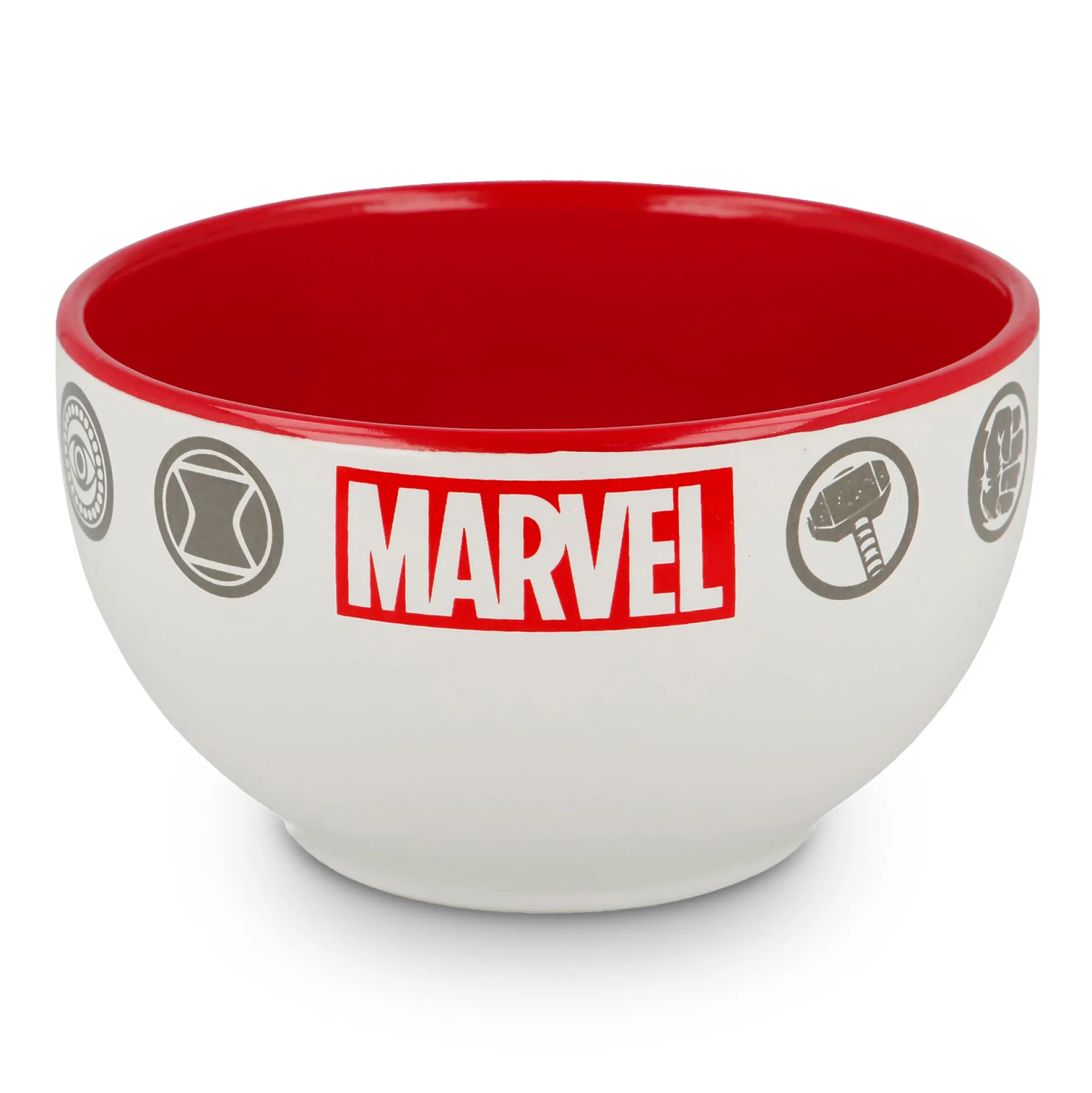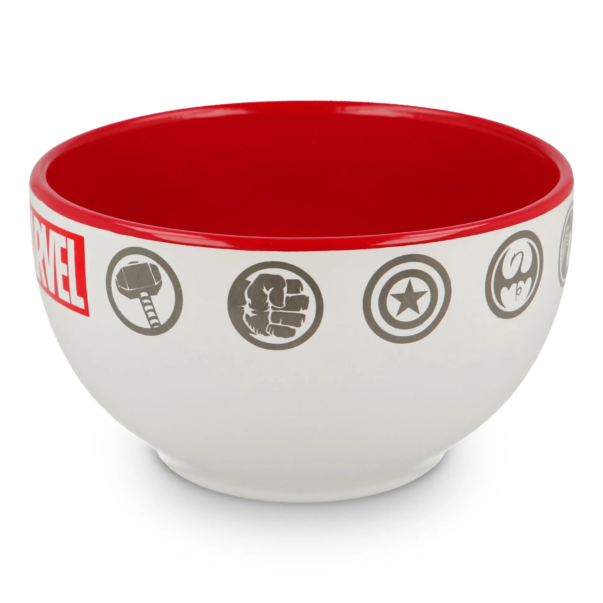 Avengers, assemble – voor het ontbijt! Met de officieel gelicentieerde Marvel Icons mueslikom haal je Spider-Man, Iron Man, Hulk, Thor en Captain America aan tafel. Witte buitenkant met logo en hero-icons, rode binnenkant – ziet er top uit en zet aan tot heldendaden (of een tweede ronde).