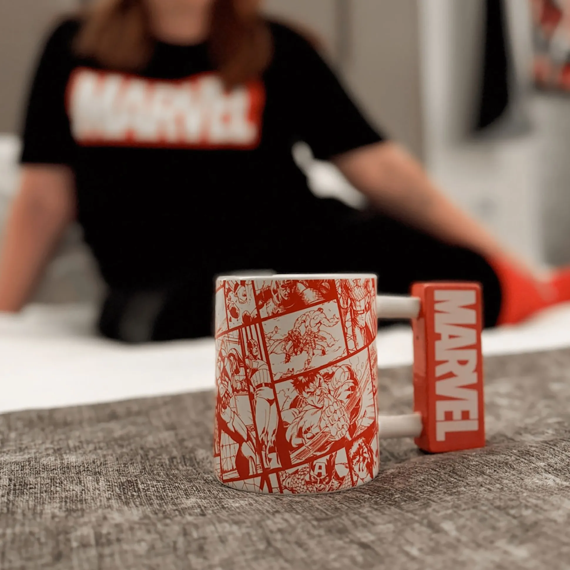 Jouw ochtend kan wel wat meer bam en pow gebruiken? Deze officieel gelicentieerde Marvel-mok levert het — comic-design in rood en wit, met een handvat met Marvel-logo. Met in de hoofdrol Hulk, Spider-Man, Captain America en meer die je bij elke slok gezelschap houden.