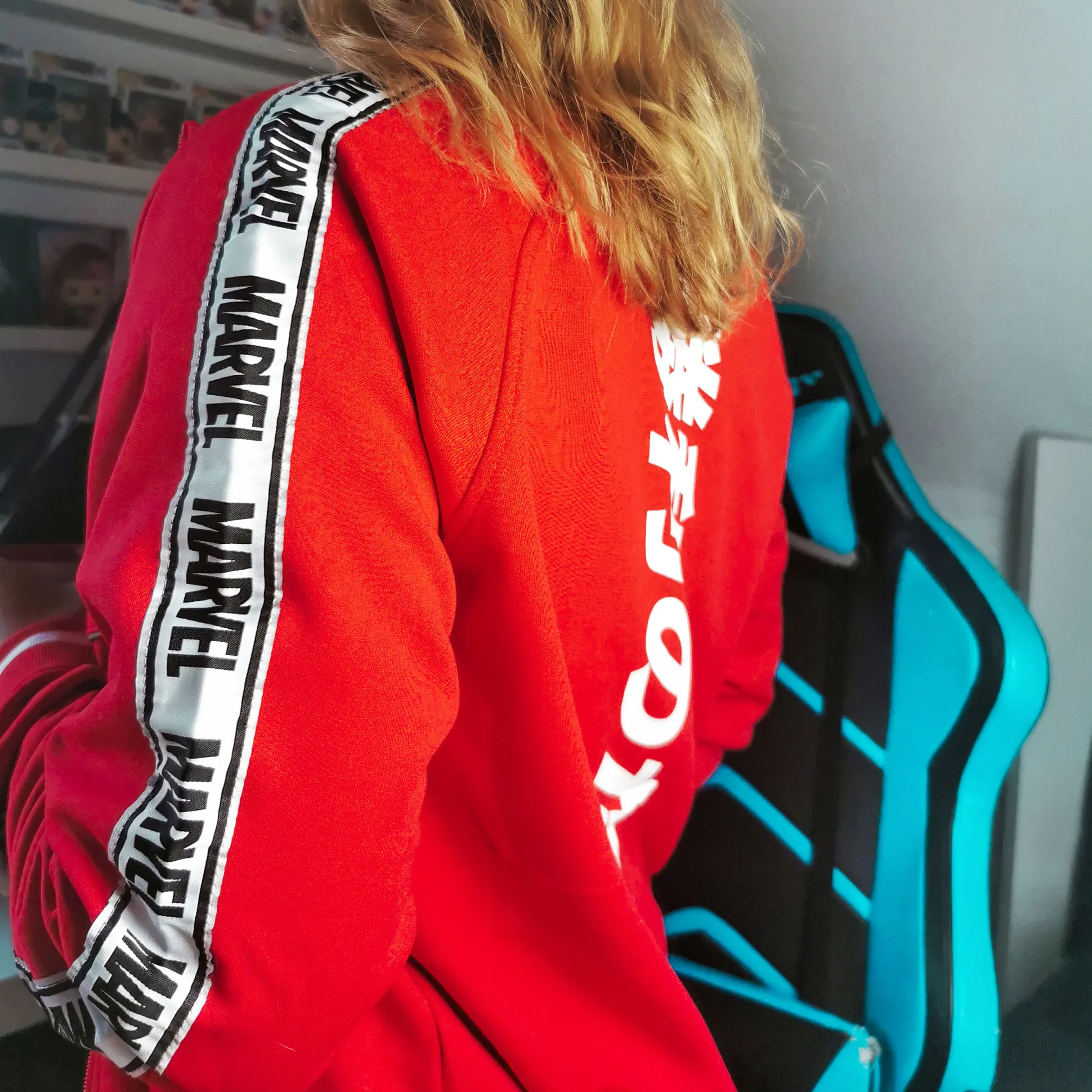 Met opstaande kraag, stevige boorden en twee steekzakken voor een sportieve fit; de binnenkant is zacht geruwd. En ja: hij is rood. Officieel gelicentieerd en makkelijk te combineren — met jeans, joggers, voor de gym, de bank of een conventie. Missie: stijl geslaagd.