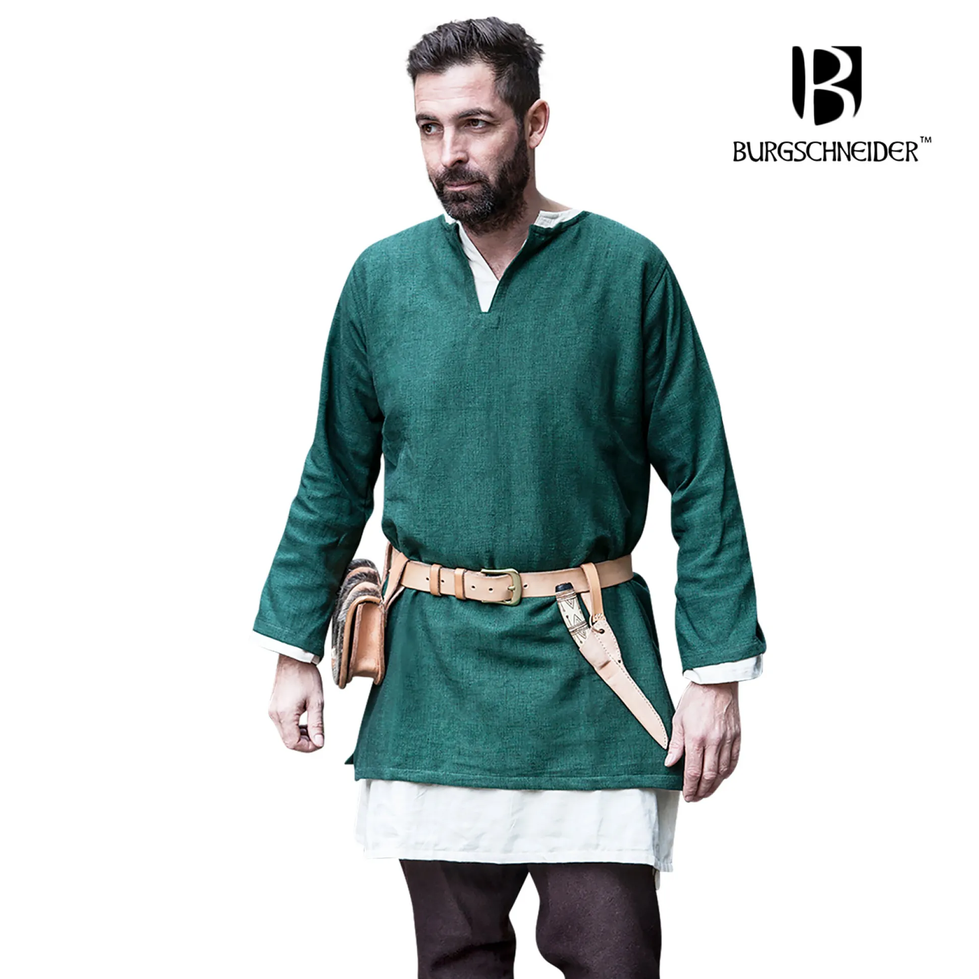 De korte tuniek Erik geeft zowel zonder als met onder tuniek een indrukwekkende verschijning, die nog versterkt wordt door de zware en grof geweven katoenen stof waarvan het is gemaakt.