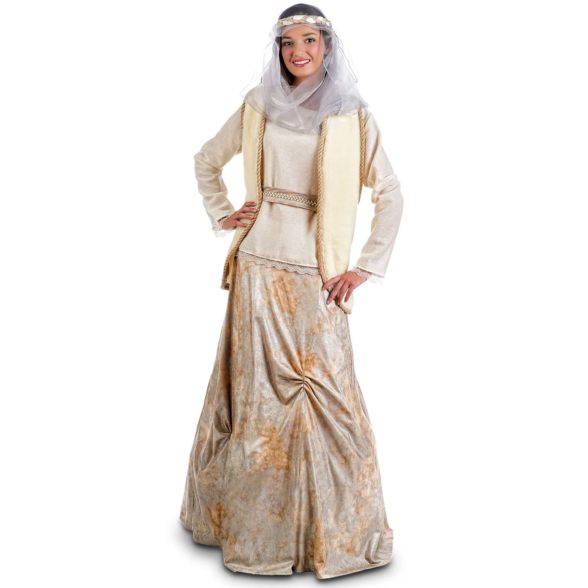 - bestaat uit een top, vest, rok, sjerp, haarkrans en sluier