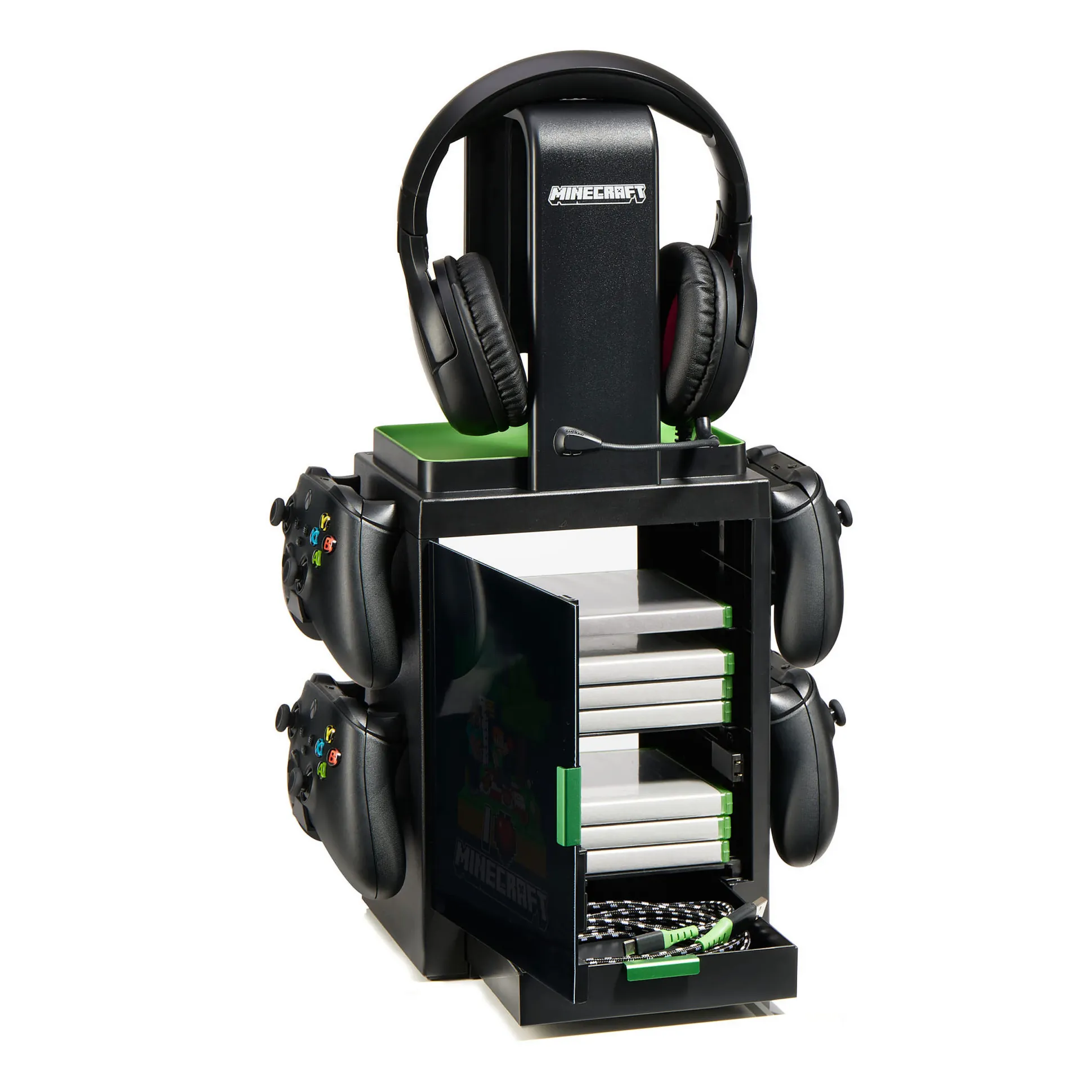 - Opslag voor 10 games of films, 4 controllers en een koptelefoon