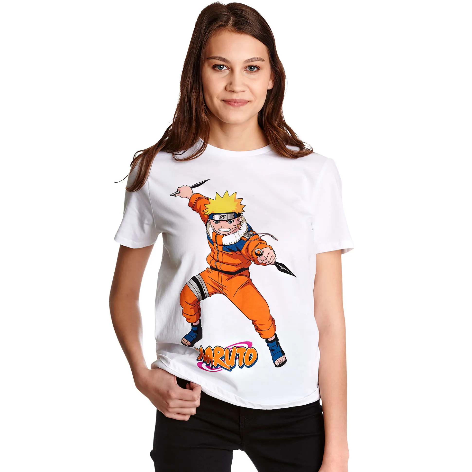 Klaar om met Naruto Uzumaki op missie te gaan? Dit officieel gelicenseerde Naruto dames T-shirt brengt de toekomstige Hokage rechtstreeks naar je outfit. De grote karakterprint op de voorkant zet Naruto in de spotlights – boordevol Rasengan-energie. De losse fit en ronde hals zorgen voor relaxed comfort, of je nu traint met Team 7, aan het bingewatchen bent of een ramen-date hebt. In clean wit combineer je ‘m moeiteloos, van jeans tot joggers. Perfect om je ninja-spirit te laten zien zonder ook maar één jutsu te oefenen. Aantrekken, chakra laden en gaan!