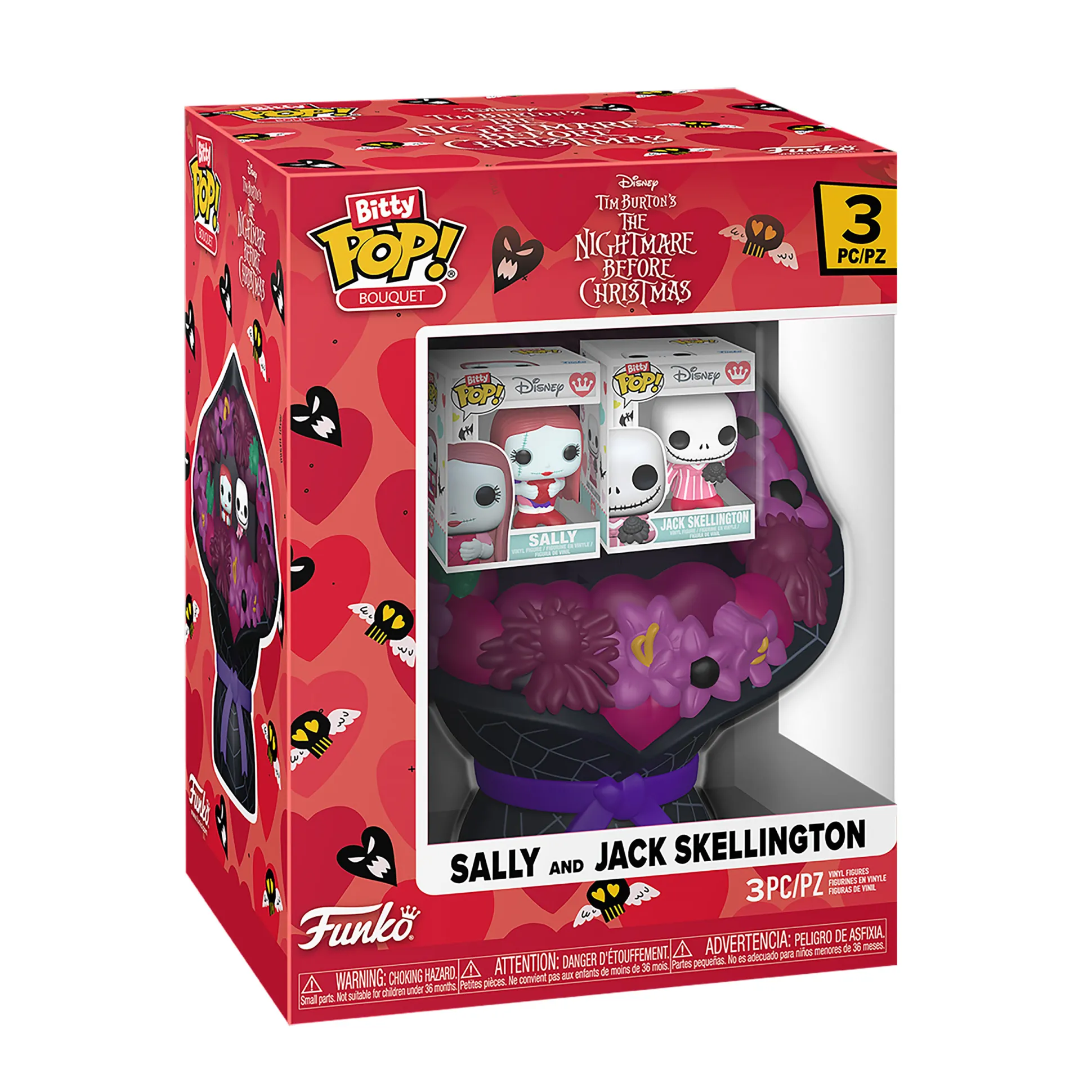 In plaats van rozen die verwelken, krijg je hier een boeket dat voor altijd meegaat – inclusief twee piepkleine Funko Bitty Pops: Jack Skellington en Sally in een extra zoet Valentijnsdesign. Ze komen allebei in een eigen kleine window box (met afneembaar display), zodat je ze in de doos, uit de doos of precies zoals jouw verzamelaars-hart het wil, kunt uitstallen. Ze zijn maar 3 cm hoog, maar emotioneel megagroot.