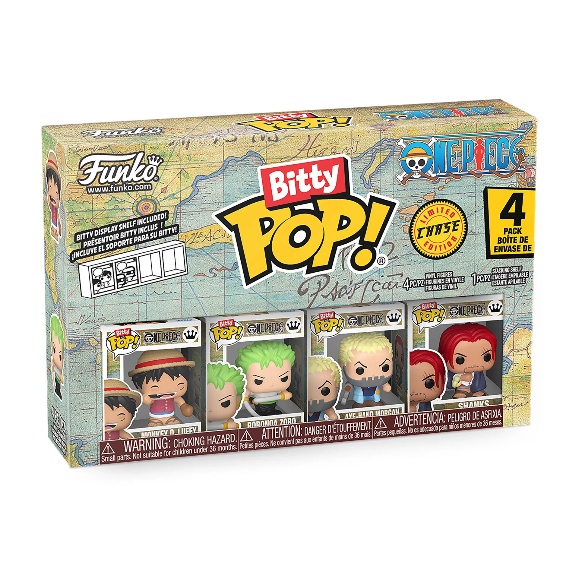 - bevat 4 Funko Bitty Pop-figuren: Monkey D. Luffy, Roronoa Zoro, Axe-Hand Morgan + 1 mystery-figuur