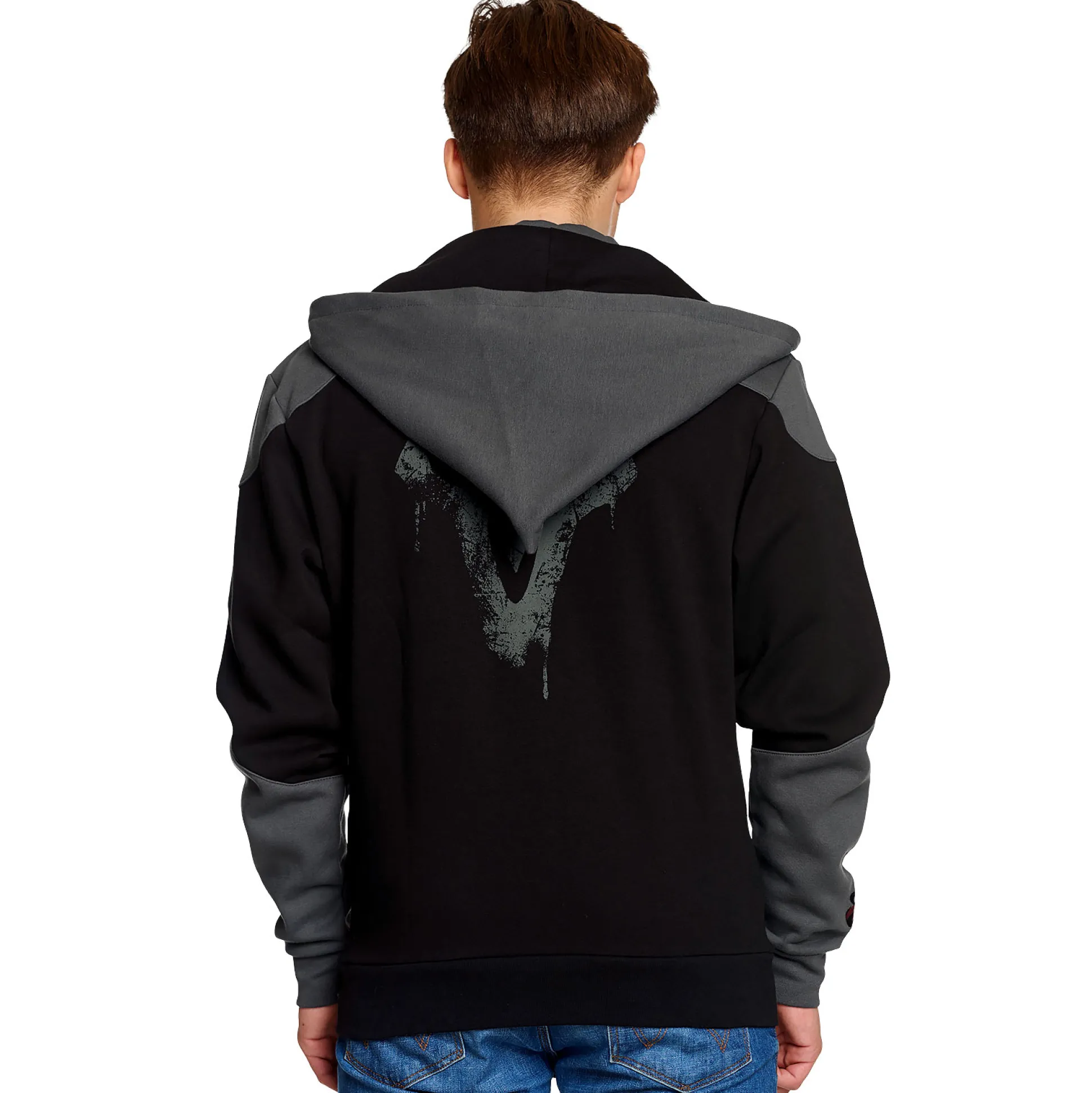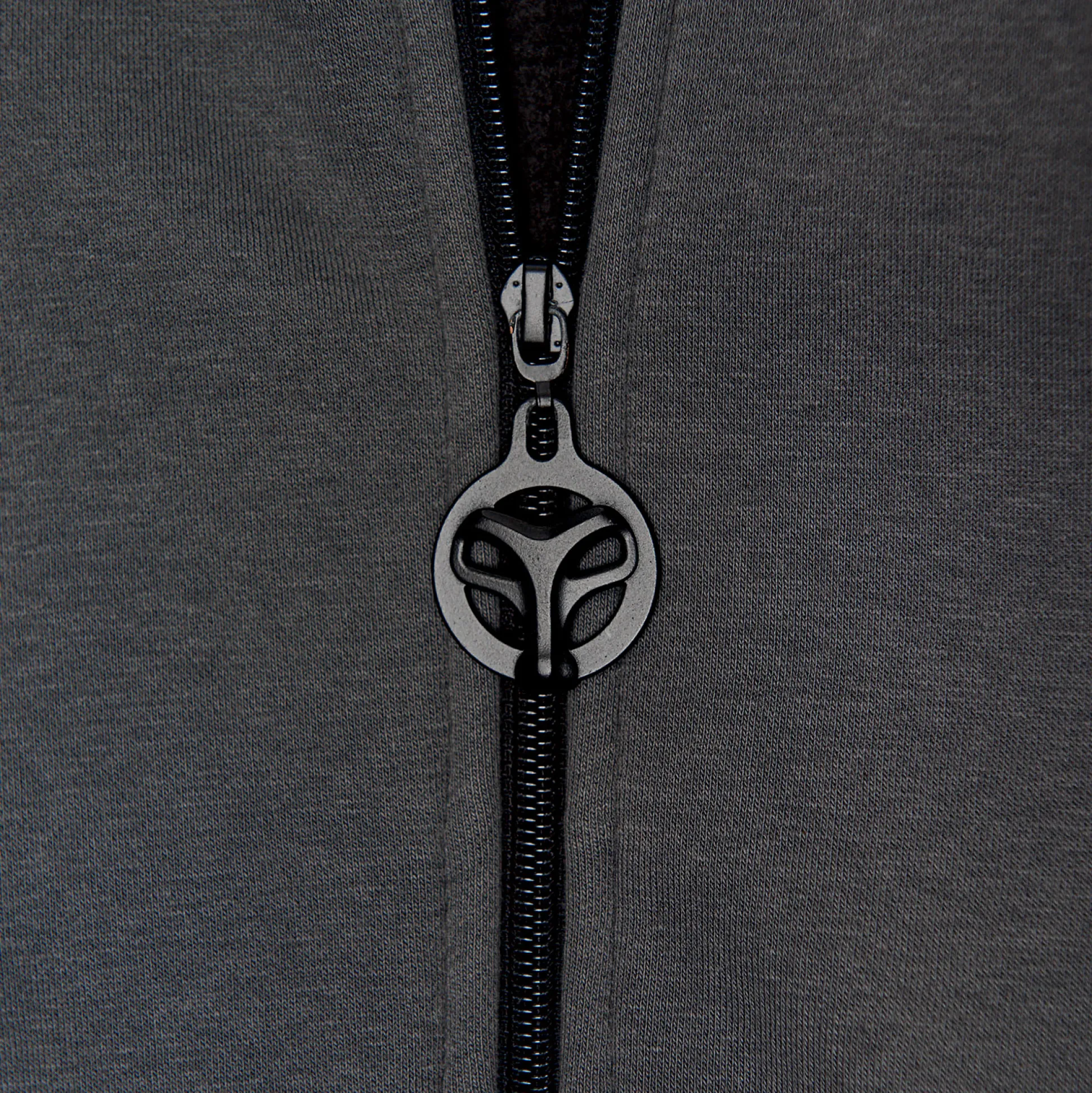 - puntige capuchon met symbool borduurwerk aan de binnenkant, rits met metalen logo