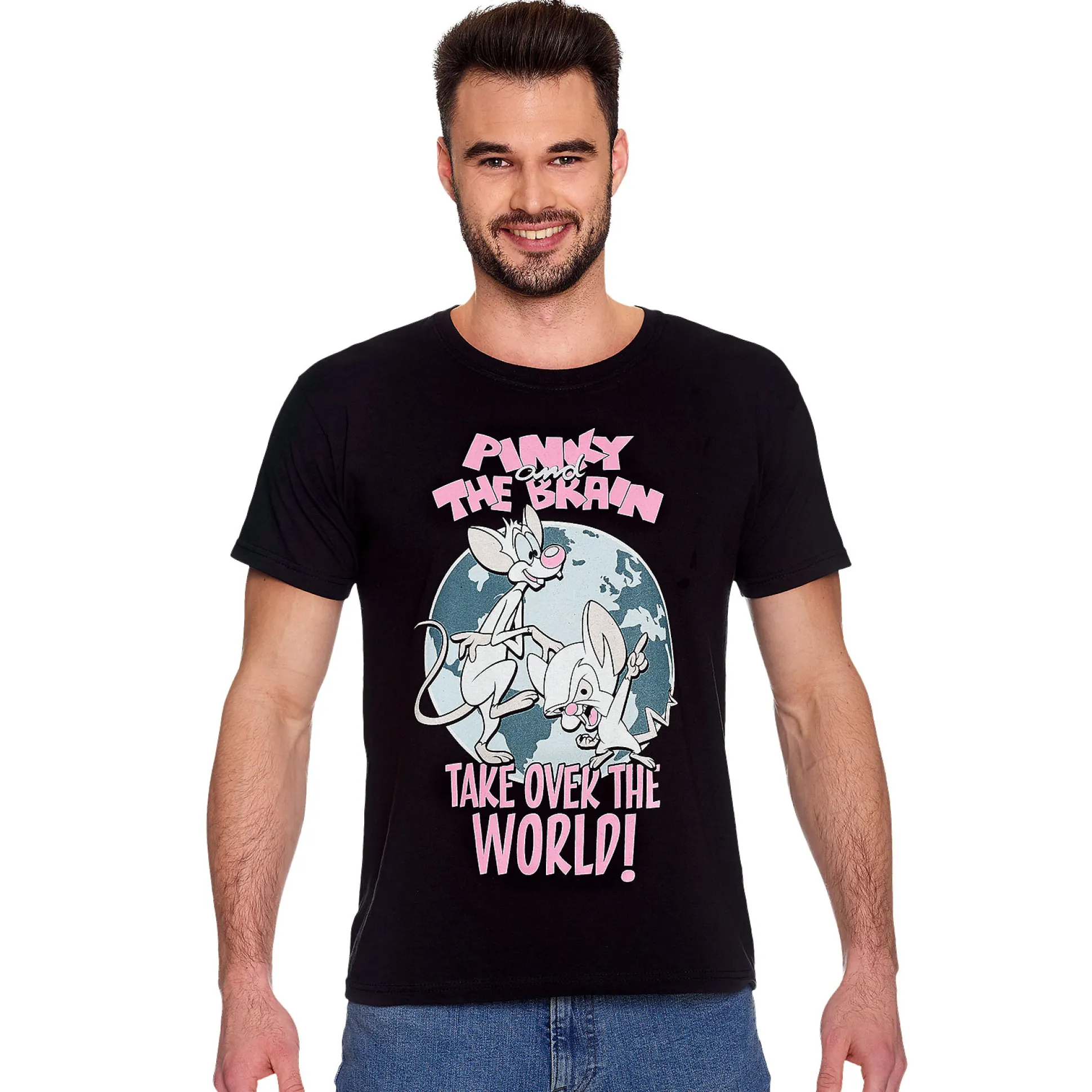 Hetzelfde als elke avond, Pinky: proberen de wereld te veroveren! Met dit officieel gelicentieerde Pinky and the Brain T-Shirt wordt je meesterplan draagbaar — met het ‘Take Over The World’-motief op diepzwart. Rechte pasvorm en klassieke ronde hals houden het comfy terwijl je plannen smeedt en af en toe ‘Narf!’ roept. Makkelijk te combineren, moeilijk te negeren. Of je nu Team Brain of Team Pinky bent: aantrekken, de labmuizen verzamelen, eerst de bank veroveren, daarna de planeet. Wereldheerschappij begint in je kledingkast.