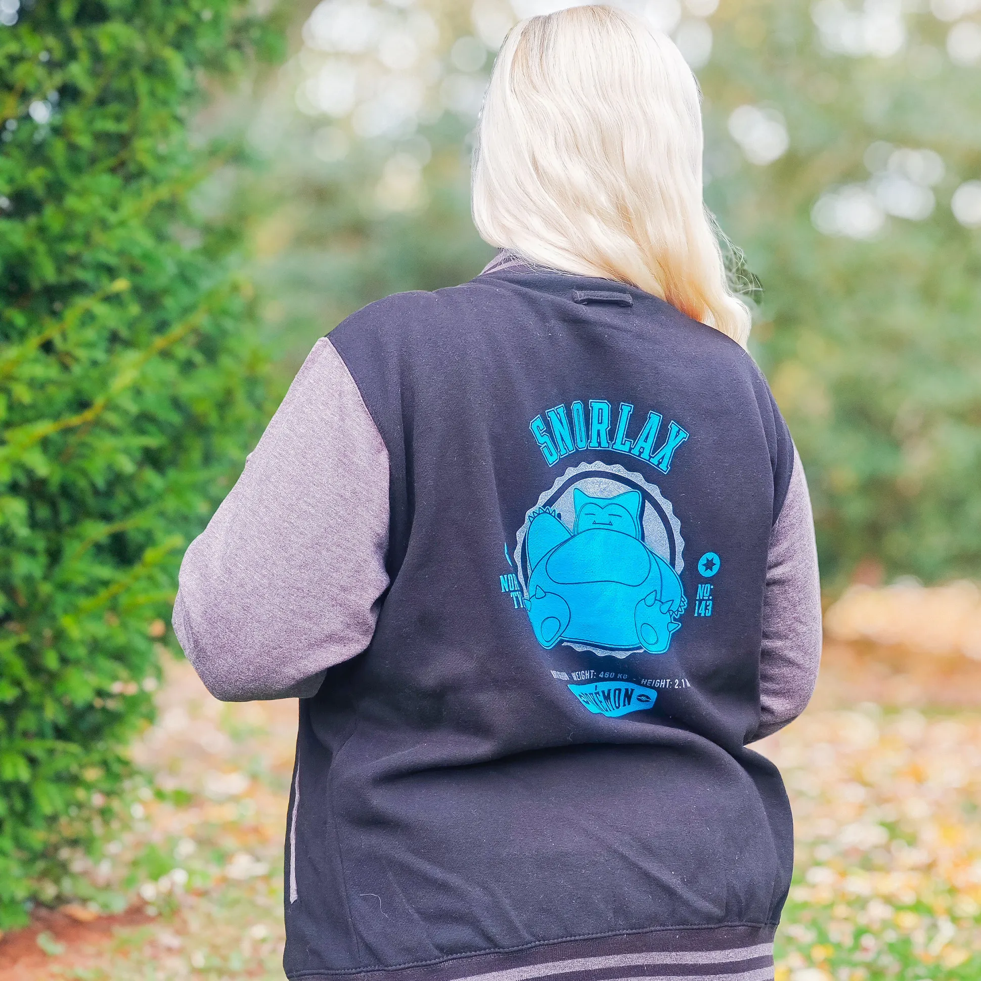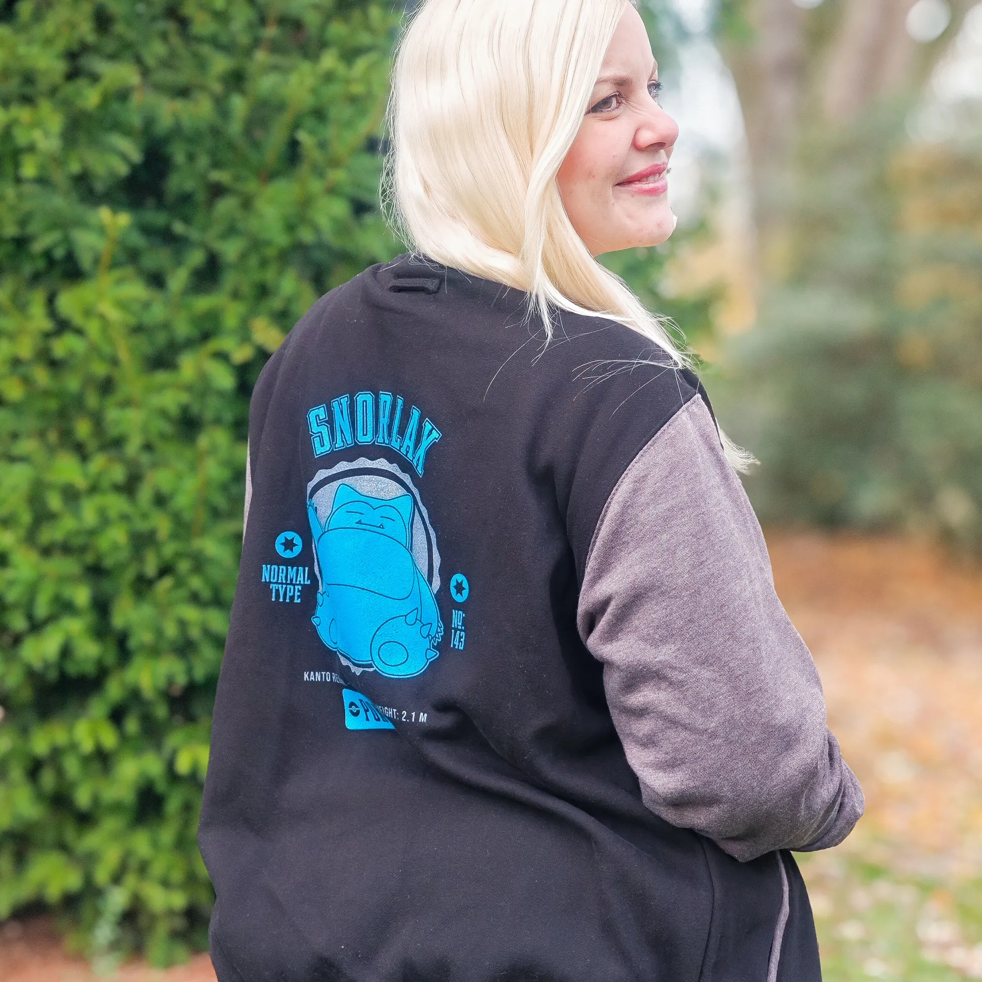 Slaap als een pro, zie eruit als een baas. Dit officieel gelicentieerde Nintendo Pokémon collegejack zet je Snorlax‑trots groot op je rug en houdt het voor subtiel met een klein Normal Type 143‑embleem. Zachte, geruwde binnenkant, stevige gestreepte ribboorden en twee voorzakken met drukknoopsluiting: zo comfy als een powernap en precies zo praktisch als je nodig hebt. Voor campus, con of bank — probeer alleen niet in slaap te vallen midden in een high‑five.