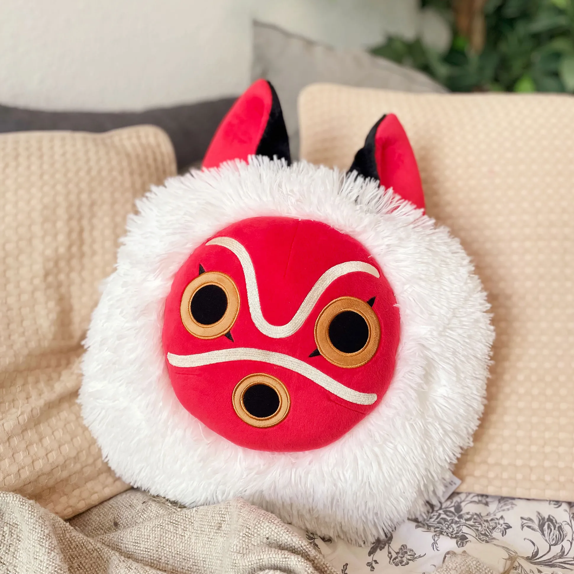 Jouw huis + San’s masker = instant Mononoke-sfeer. Dit officieel gelicentieerde Princess Mononoke-kussen in het San-maskerdesign heeft geborduurde details, is heerlijk zacht en klaar voor bank, bed of marathons door het Woud der Voorouders (oftewel je watchlist). Afmetingen: 33 x 15 x 39 cm. Een cadeau waar elke fan echt blij van wordt (jijzelf ook).