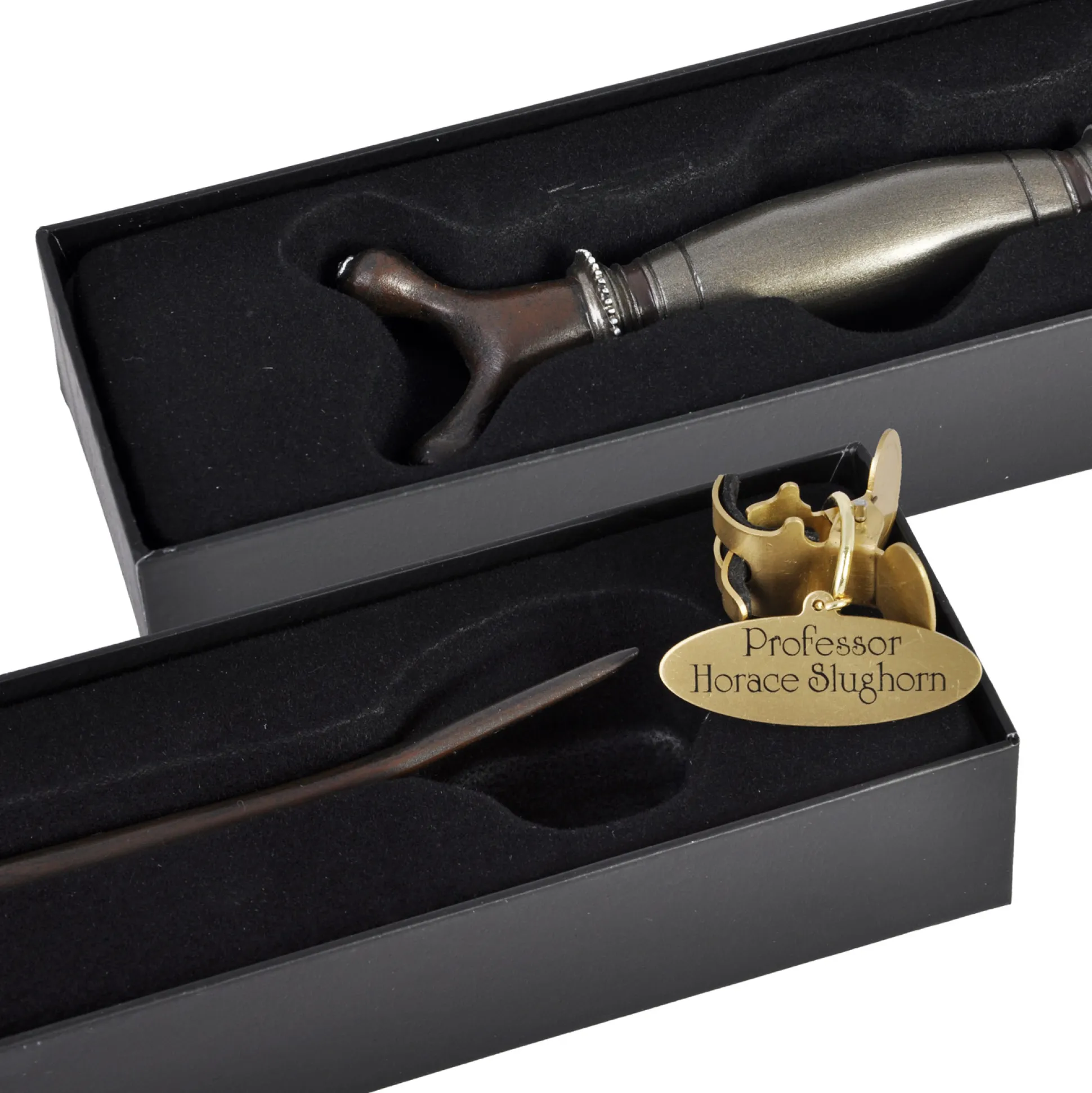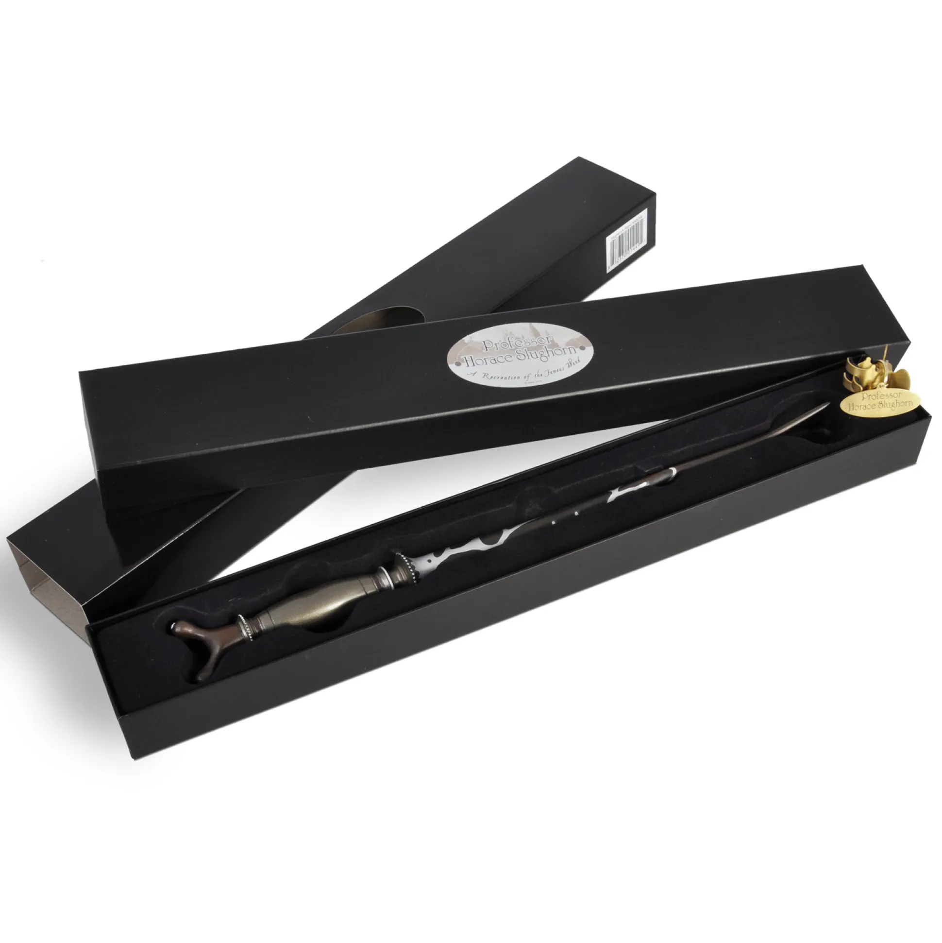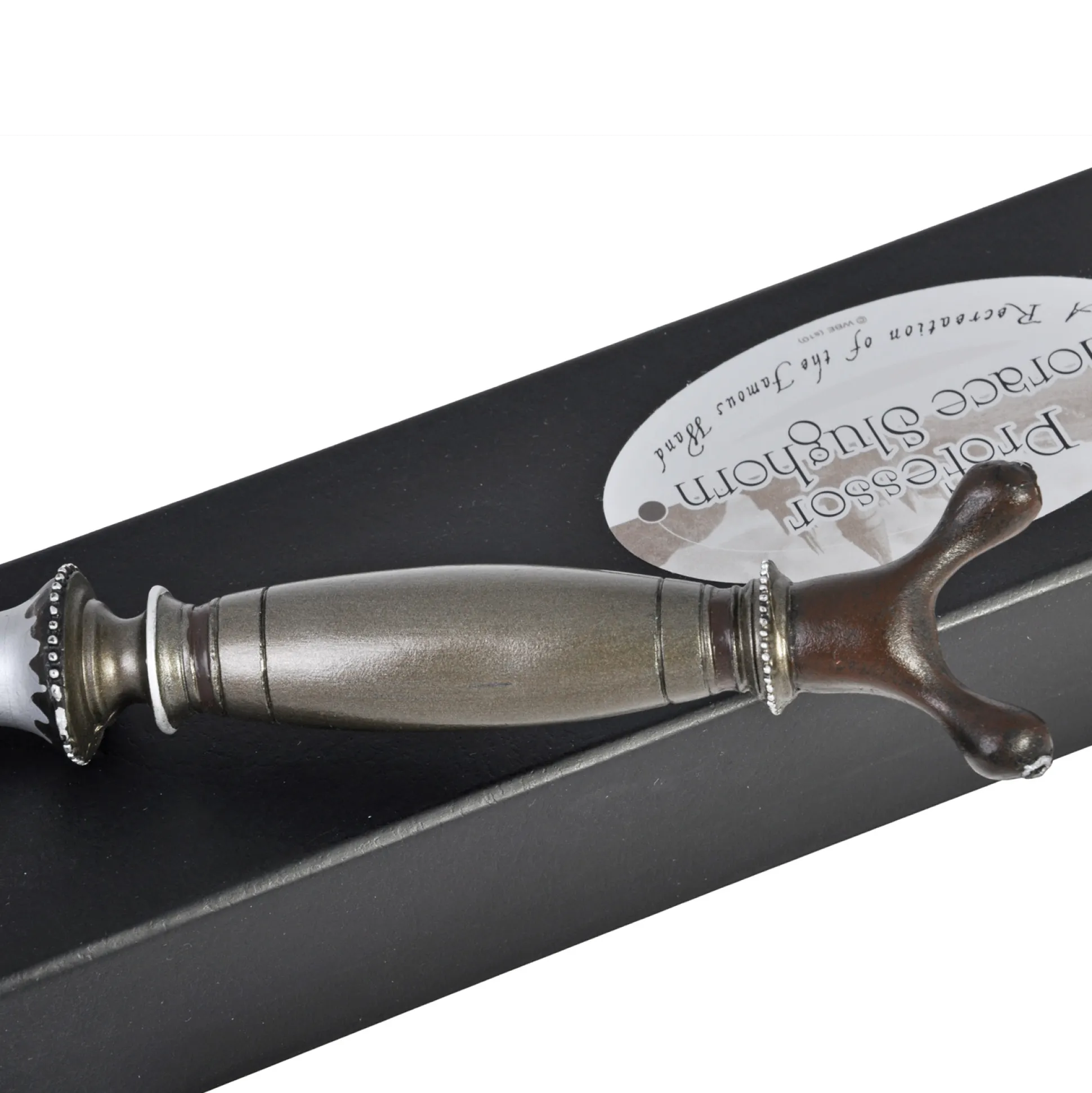 Zijn toverstok is donkerbruin en glad, en versierd met een spiraalvormig patroon in zilverkleur. De punt van de stok is gebogen. Boven en onder het handvat bevinden zich twee sierranden met zilverkleurige details. Het handvat is iets lichter van kleur en eindigt in twee hoornvormige punten, die eveneens met zilverkleurige applicaties zijn afgewerkt.