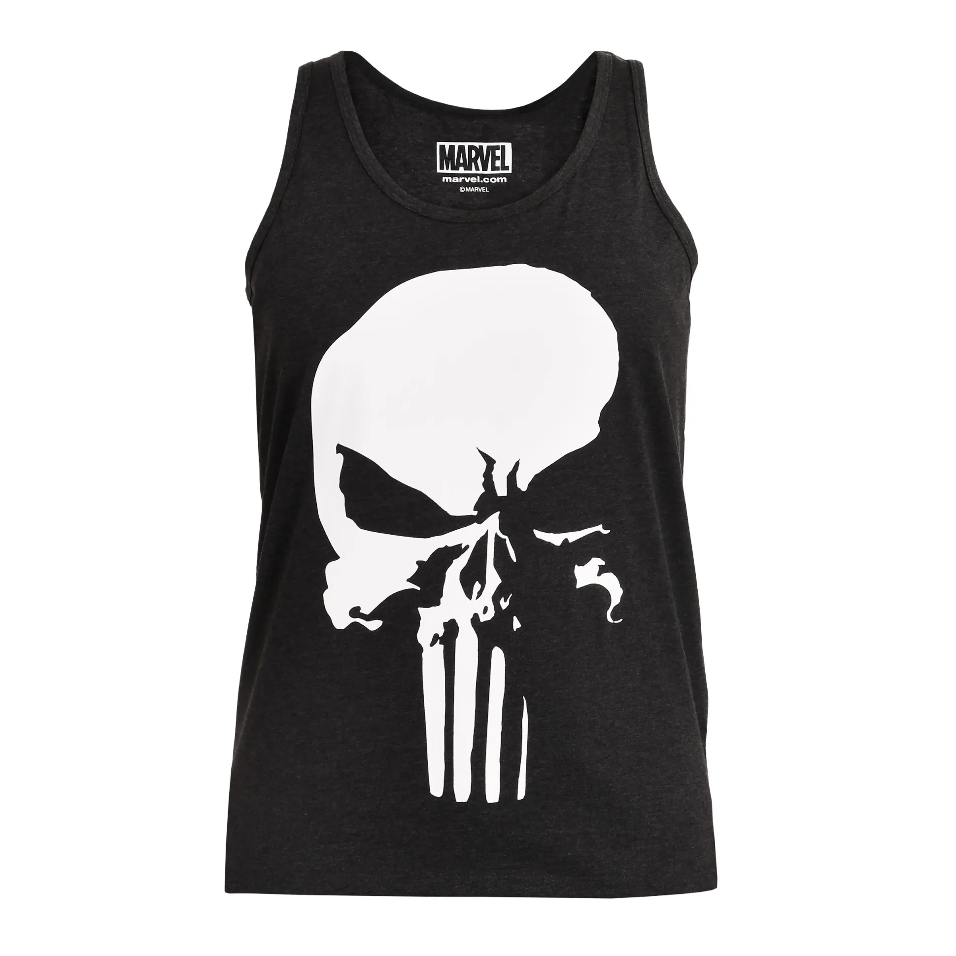 Grijs tanktop, schedel, nul compromissen: dit officieel gelicentieerde Marvel heren‑tanktop zet de iconische Punisher Skull pontificaal op je borst — groot, opvallend, niet te missen. Perfect voor de sportschool, festivals of wanneer je T‑shirt een dag vrij heeft.