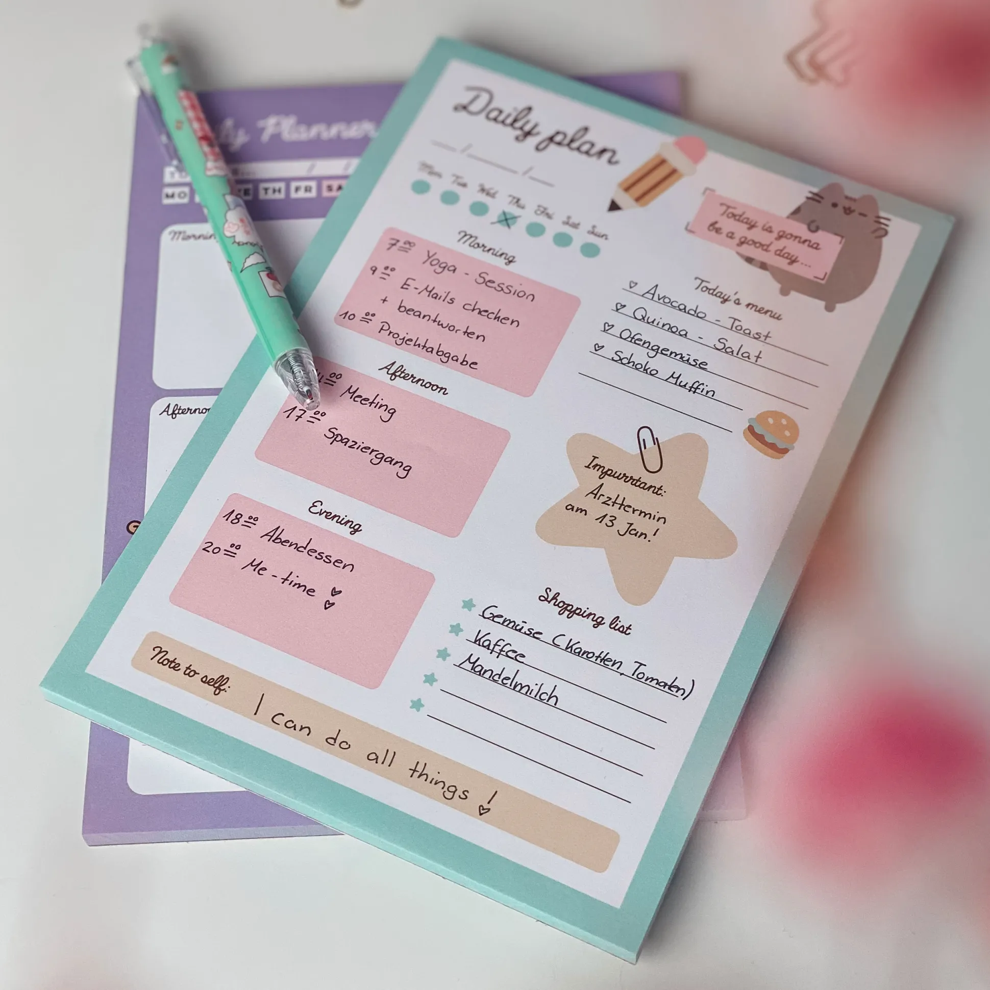 Maak van elke dag een Good Day—met Pusheen aan je zijde. Deze officieel gelicentieerde dagplanner in Pusheen the Cat-design brengt orde in to-do’s, afspraken en gedachten zonder het knuffelgehalte te verliezen. Op elke pagina vind je een to-dolijst plus ruimte voor notities—perfect voor ingevingen, boodschappenlijstjes of kleine snorhaar-krabbels.