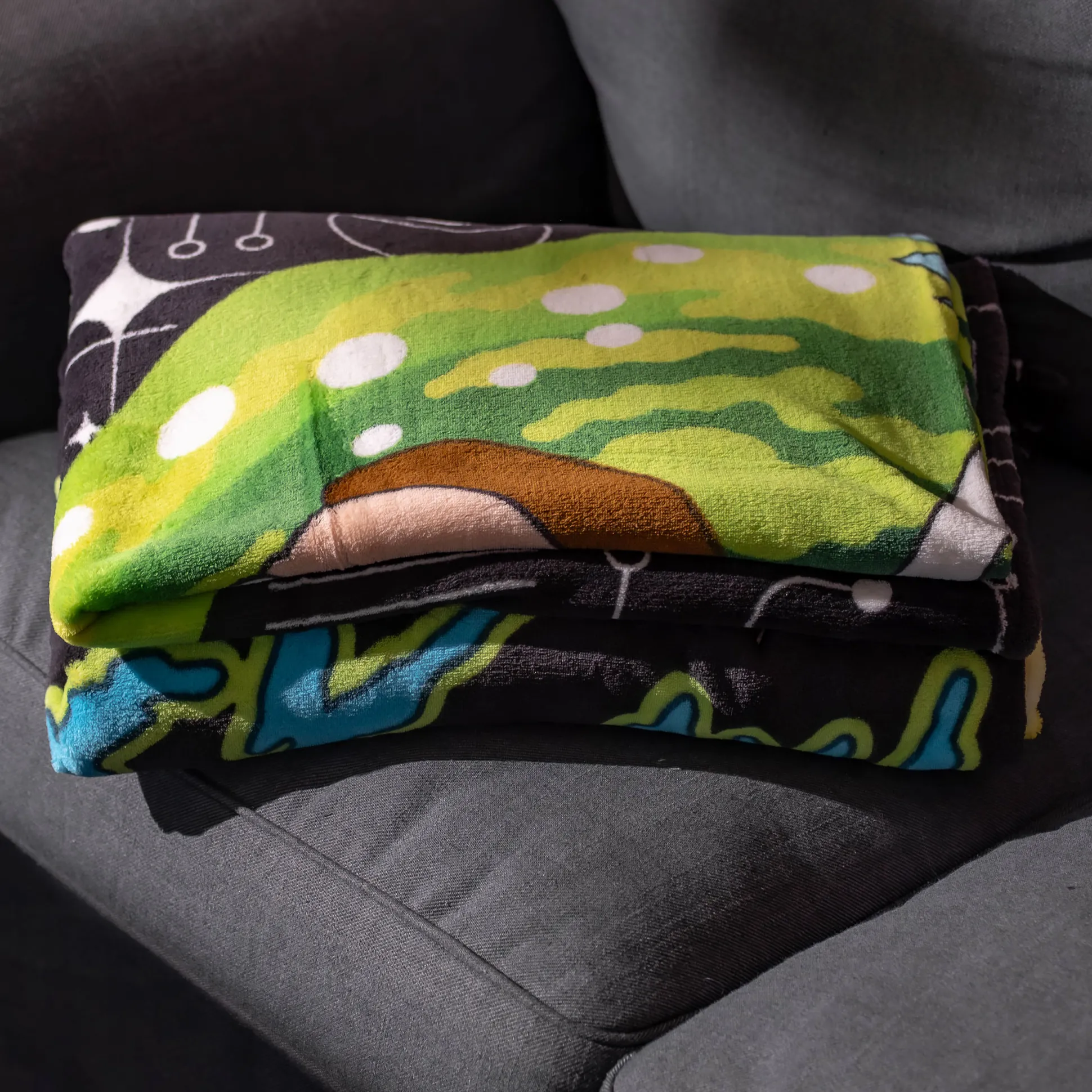 Bank, bed of interdimensionale roadtrips: deze officieel gelicentieerde Rick and Morty knuffeldeken brengt portaal-vibes rechtstreeks naar huis. Het design toont Rick Sanchez en Morty Smith midden in de sprong door het felgroene portaal – perfect om in weg te kruipen terwijl je op het volgende seizoen wacht. Extra groot in XXL-formaat (180 x 220 cm) en heerlijk zacht, zodat je warm blijft tijdens lange bingesessies. Ideaal als cadeau voor fans die chaos, wetenschap en warme voeten vieren. Kort gezegd: deken om, portalen open, ontspanning aan.