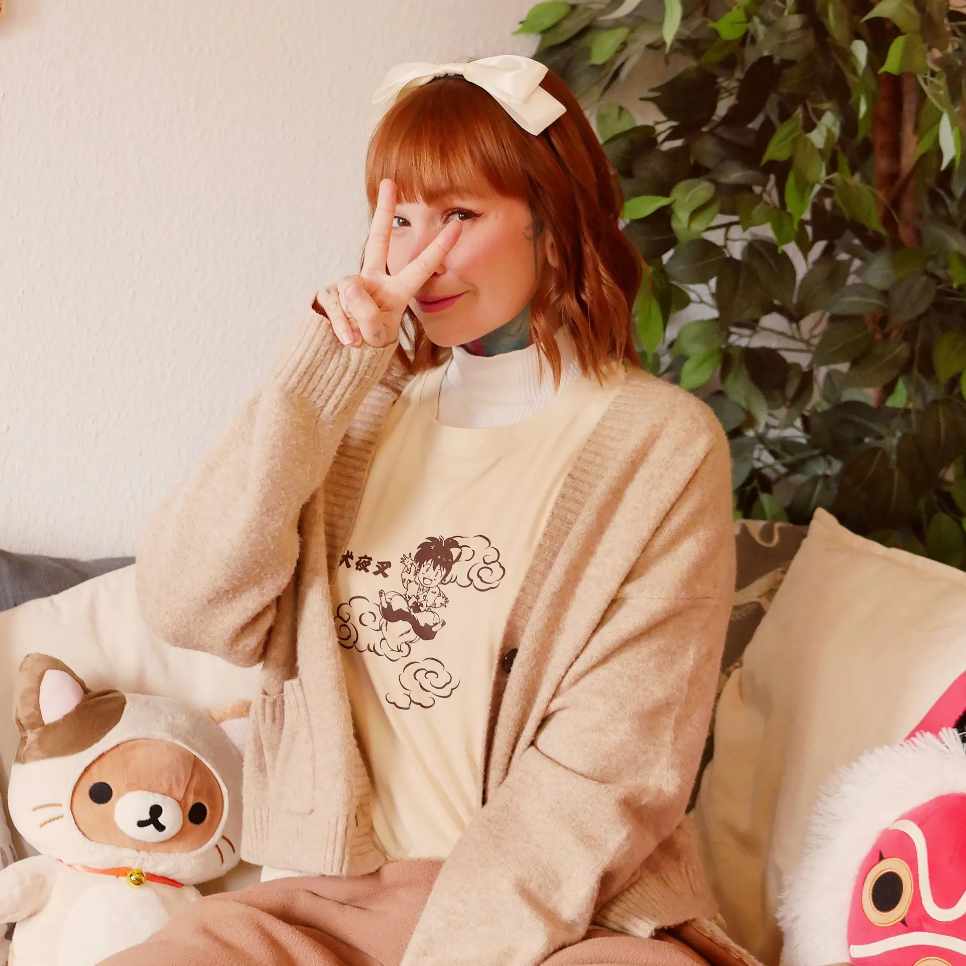 Shippo in XL‑charmemodus: dit beige T‑shirt zet de ondeugendste vossengeest van de Inuyasha‑crew groot op de voorkant. Rechte fit en ronde hals houden ’m comfy van binge‑sessie tot dagelijks avontuur. Matcht met zo’n beetje alles en zorgt voor instant nostalgie. Voor fans die Shippo graag in de spotlights zetten.