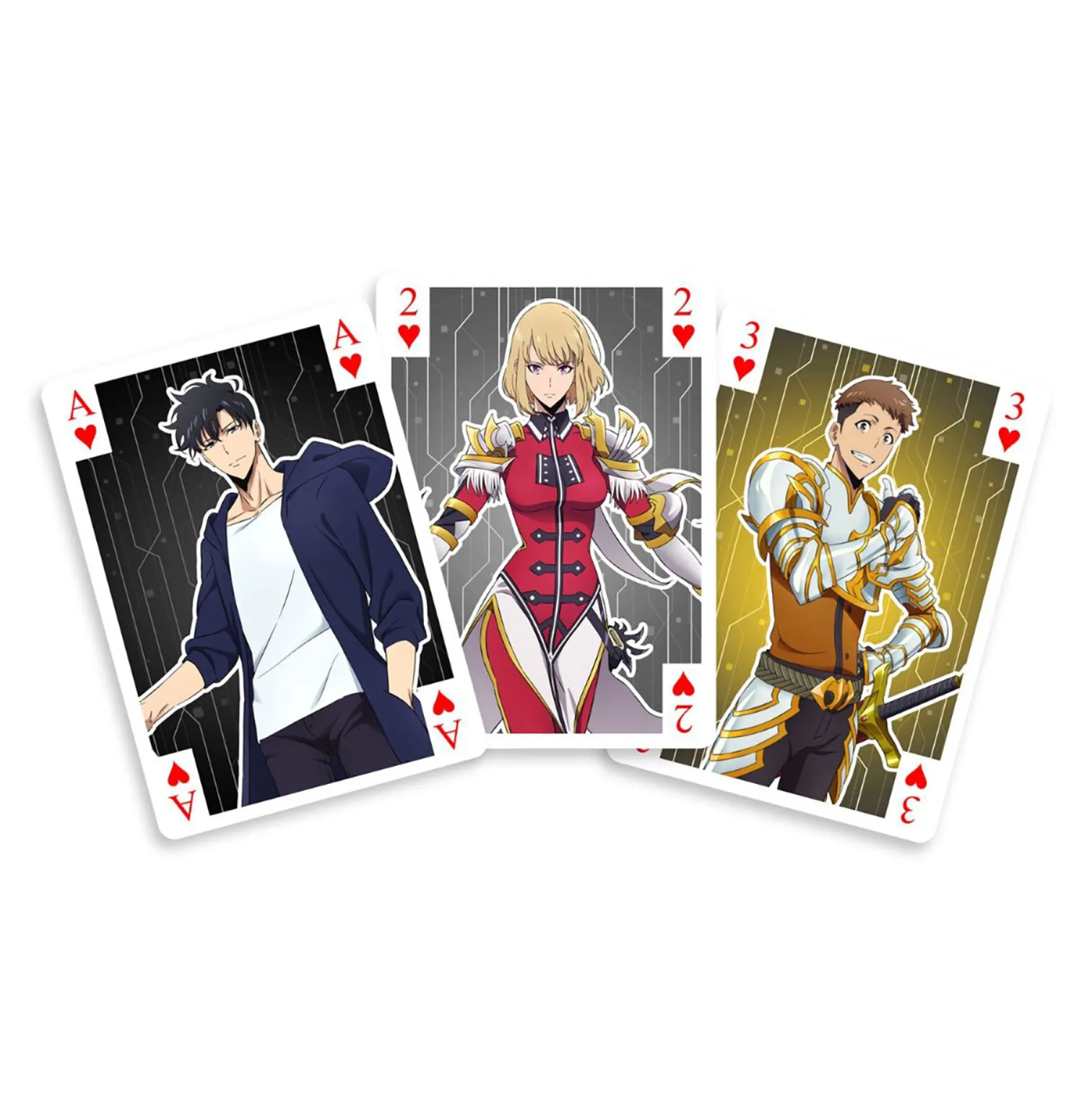 Ben jij een fan van Solo Leveling en wil je jouw liefde voor Sung Jinwoo, Cha Hae-in en Yoo Jinchul naar een hoger niveau tillen? Grijp dan deze officieel gelicentieerde speelkaarten en breng wat anime-magie in je leven! Met 52 unieke kaarten en 2 jokers, versierd met epische ontwerpen uit het Solo Leveling-universum, wordt elk kaartspel een avontuur. Of je nu poker speelt, pesten of een spontaan magisch duel houdt – met deze kaarten ben jij de held van elke spelavond. Bovendien zijn ze het perfecte cadeau voor elke Solo Leveling-fan. Waar wacht je nog op? Level up je kaartspel nu!