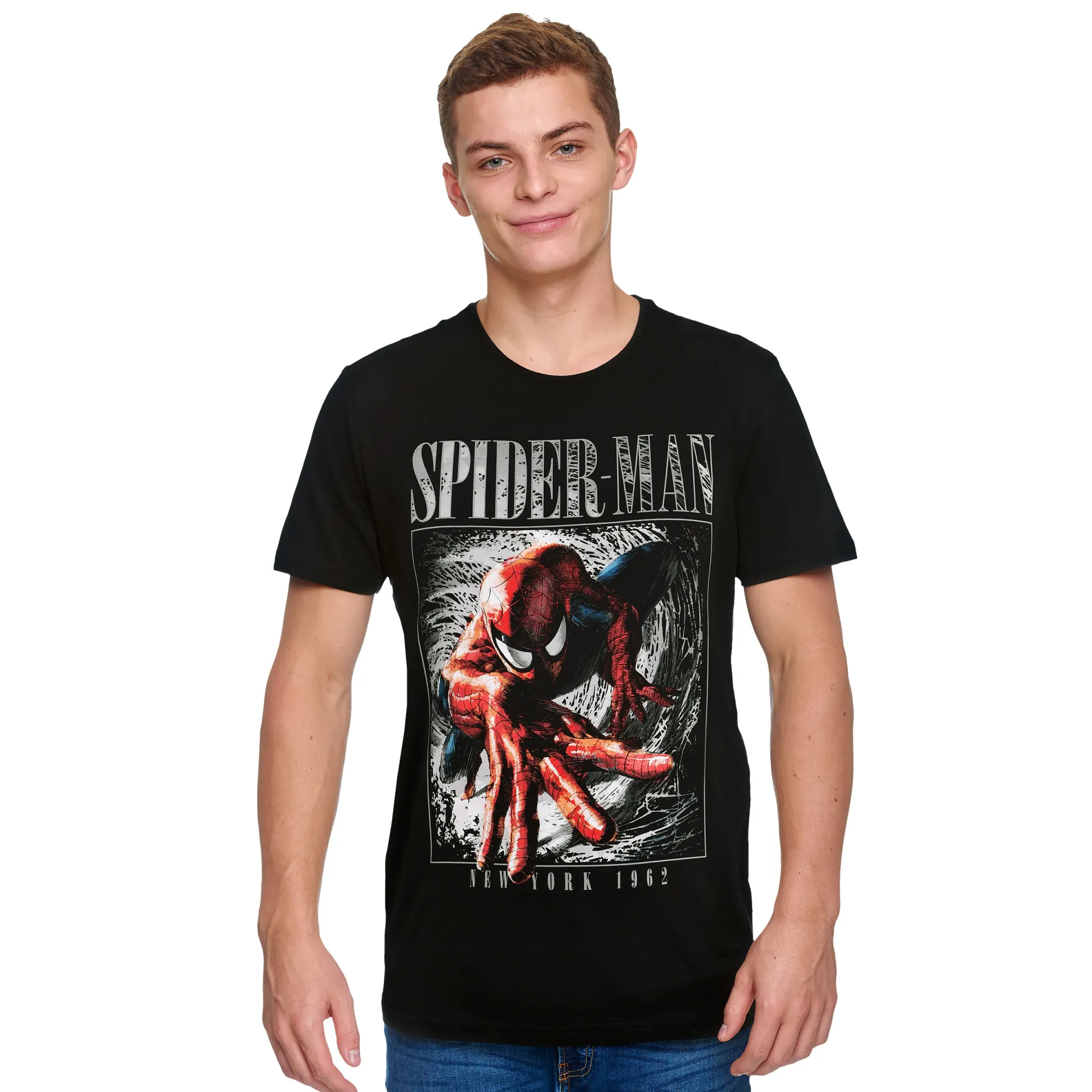 New York, 1962: een tiener wordt je vriendelijke buurtheld Spider-Man. Dit Spider-Man T-shirt viert zijn legendarische debuut — diepzwart, met een grote frontprint die meteen opvalt. Officieel gelicentieerd door Marvel, zodat je niet alleen als held oogt, maar ook kwaliteit draagt. Rechte pasvorm en ronde hals voor comfort van alledag tot je volgende avontuur (geen spinnenbeet nodig). Voor filmavonden, conventies en stadswandelingen: draag New York 1962 en laat zien hoe lang je hart al voor Spidey klopt.