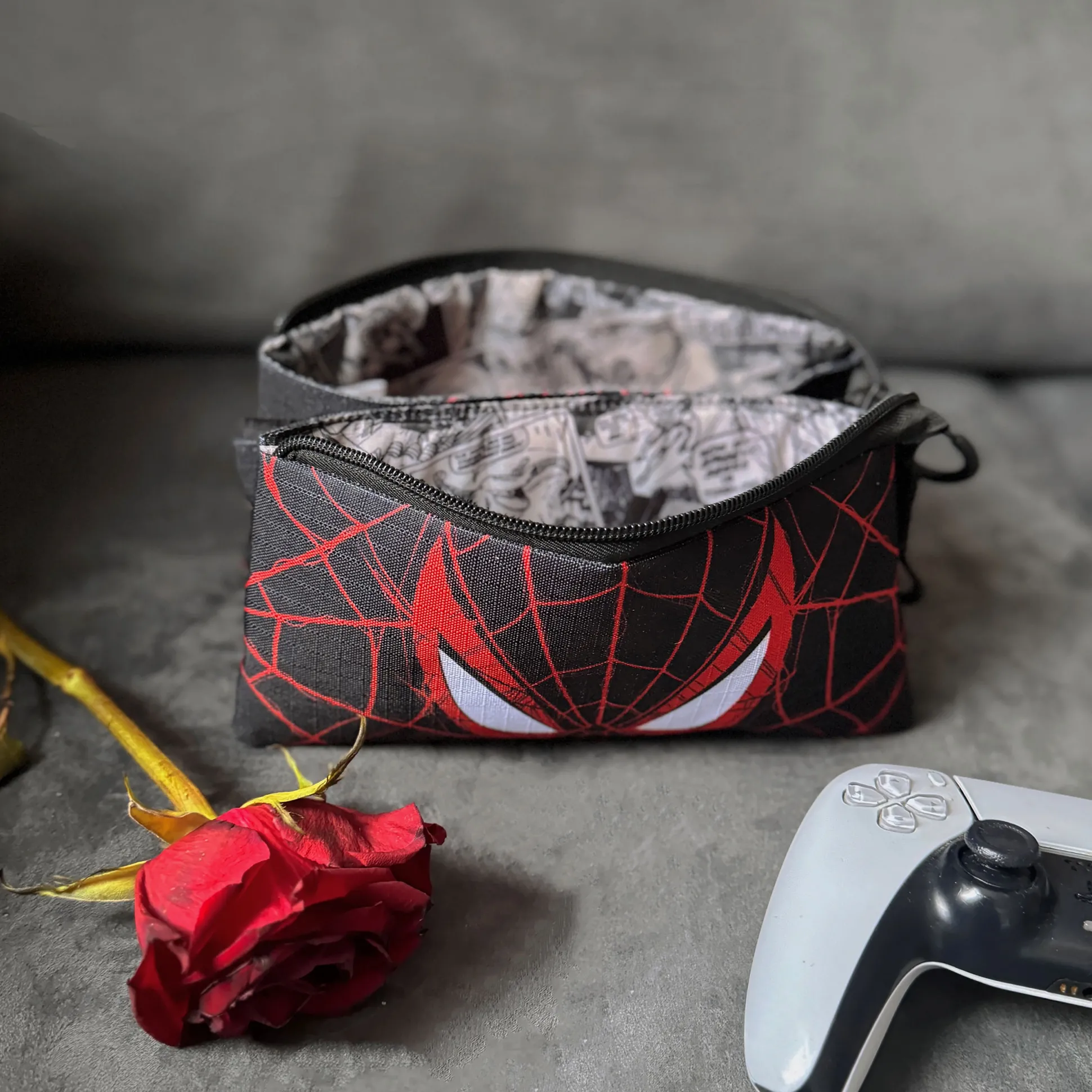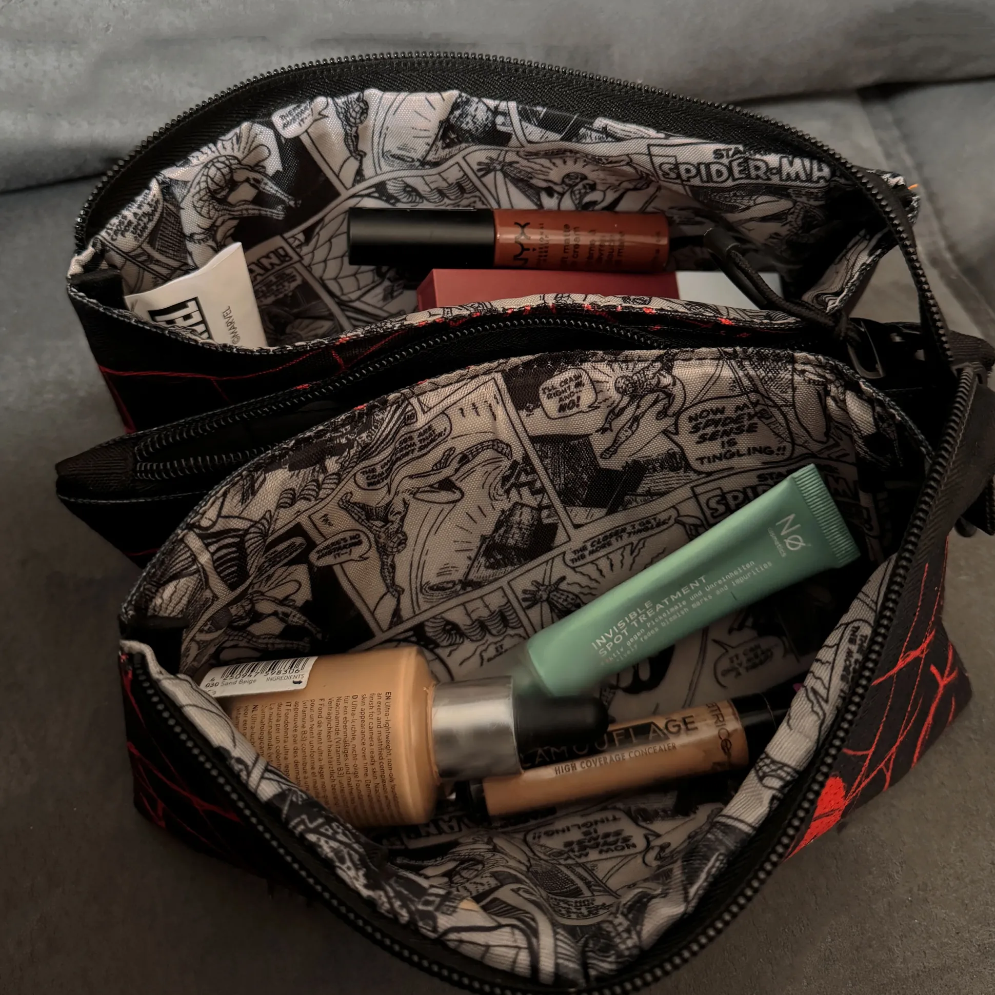 Dankzij de drie handige vakken met rits kun je je schrijfgerei, make-up essentials of zelfs je tandenborstel en meer perfect organiseren. Chaos? Niet met Spider-Man aan je zijde! Met compacte afmetingen van 22,5 x 12 cm past deze alleskunner in elke tas en is klaar voor elk avontuur.