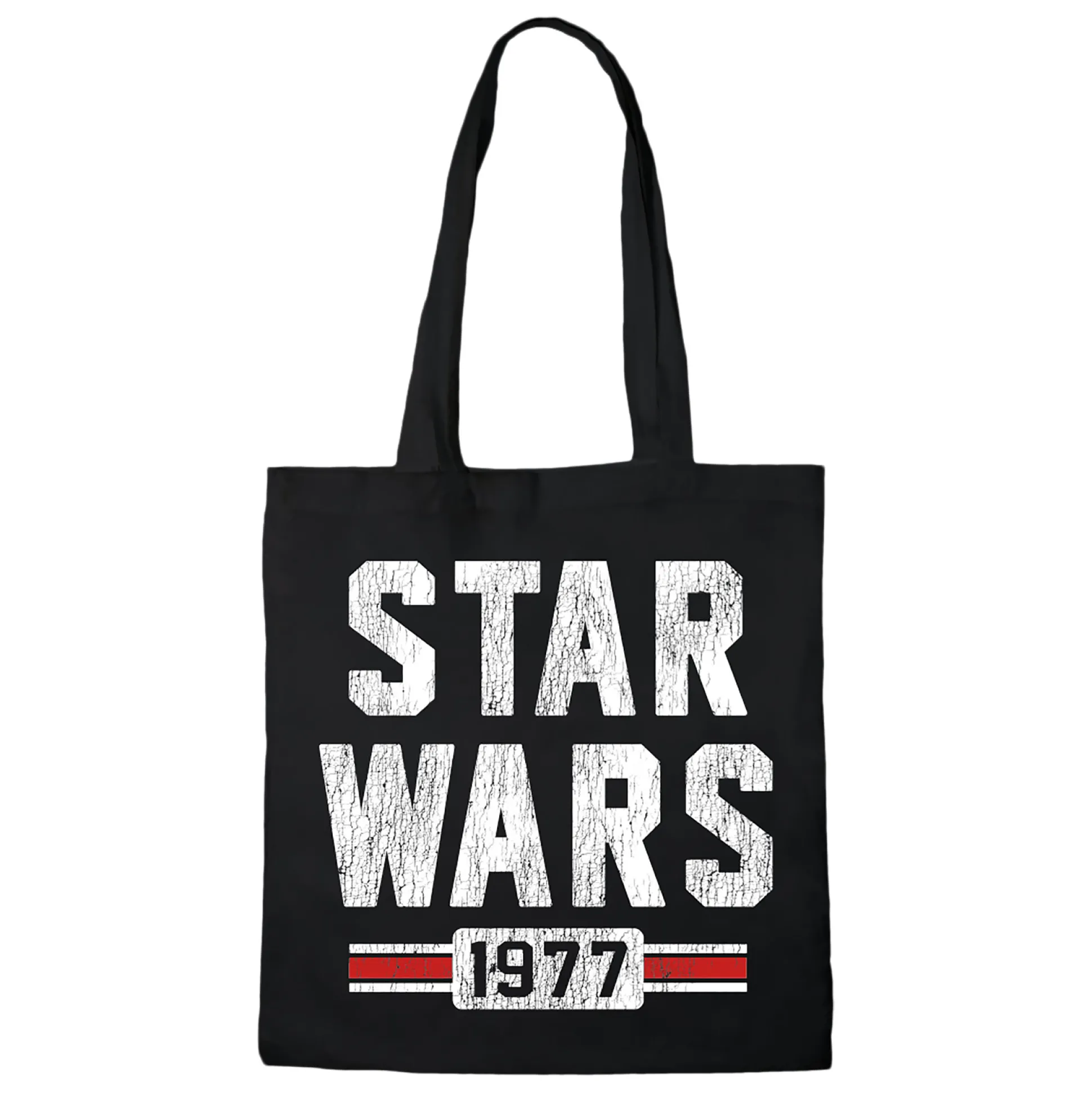 1977. Het jaar dat een galaxy far, far away ons dagelijks leven veroverde. Deze officieel gelicentieerde Star Wars-shopper heeft een groot 1977-design — een subtiele rebellie tegen saaie tassen.