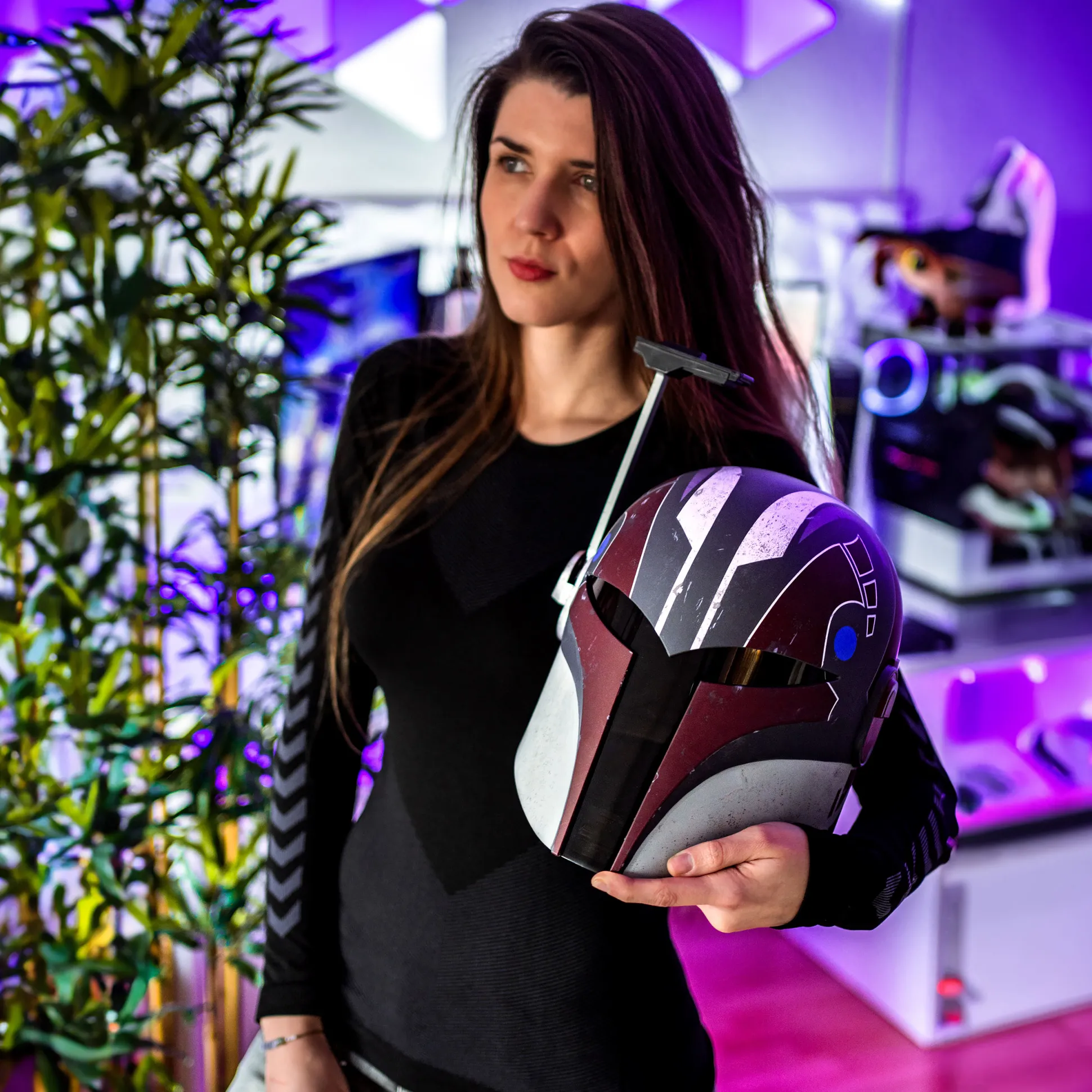 Graffiti ontmoet beskar: deze elektronische Sabine Wren premiumhelm uit Star Wars: Ahsoka (Black Series) brengt rebel vibes naar huis. Officieel gelicentieerd en gemaakt als een authentieke replica, inclusief verlicht head-up display (HUD) — voor dat extra gloedmoment bij je volgende entree.