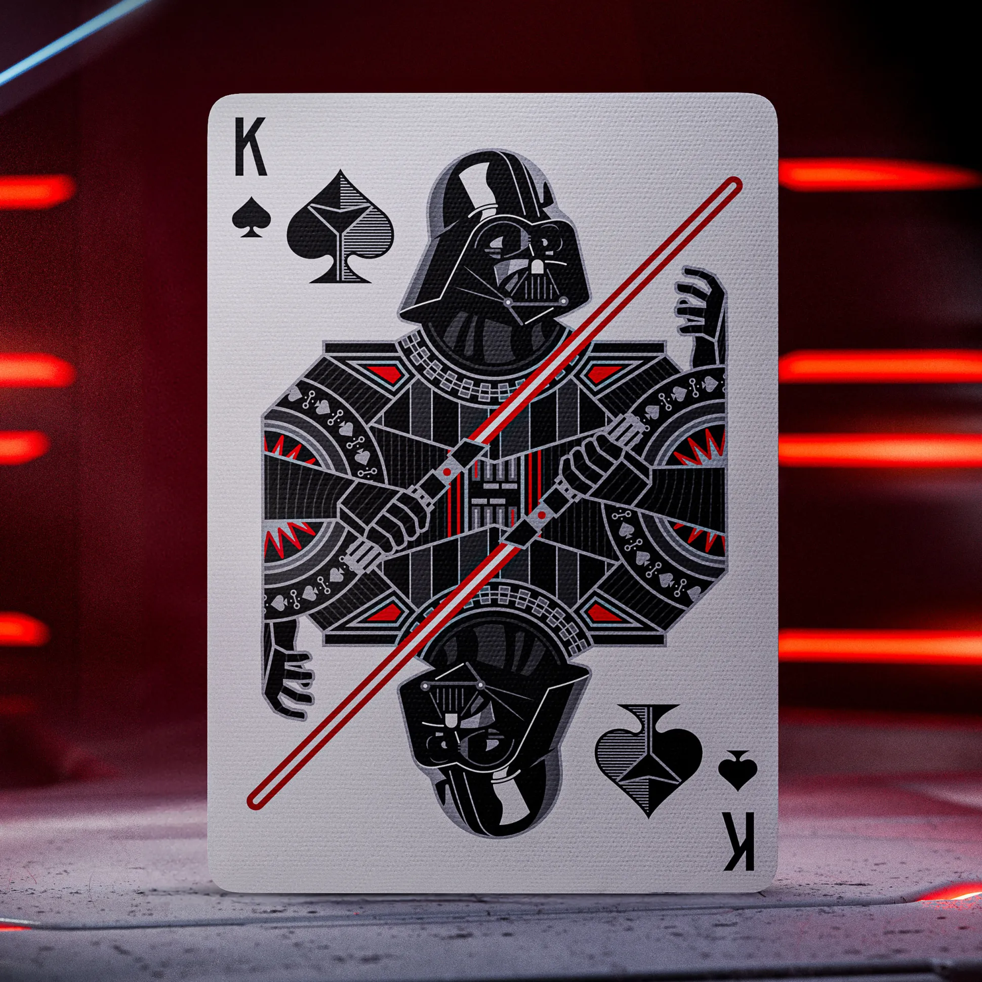 Schud de Kracht – maar dan wel de Duistere Kant. De Deluxe Editie van het Star Wars: Duistere Kant kaartspel levert je een officieel gelicentieerd deck met 52 kaarten plus 2 jokers, helemaal in Darth Vader-stijl. De plaatjeskaarten tonen de Sith-elite: Darth Maul, Graaf Dooku en de Keizer. Alles komt in een doos met metallic look en reliëfdetails – zo strak dat zelfs een Sith van binnen zou glimlachen. Perfect voor pokeravonden, rummy-potjes en als cadeau voor fans die de Imperial March horen terwijl ze schudden.