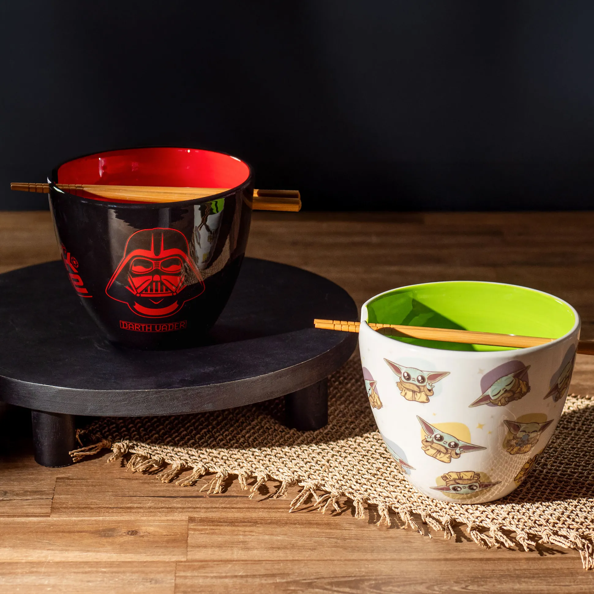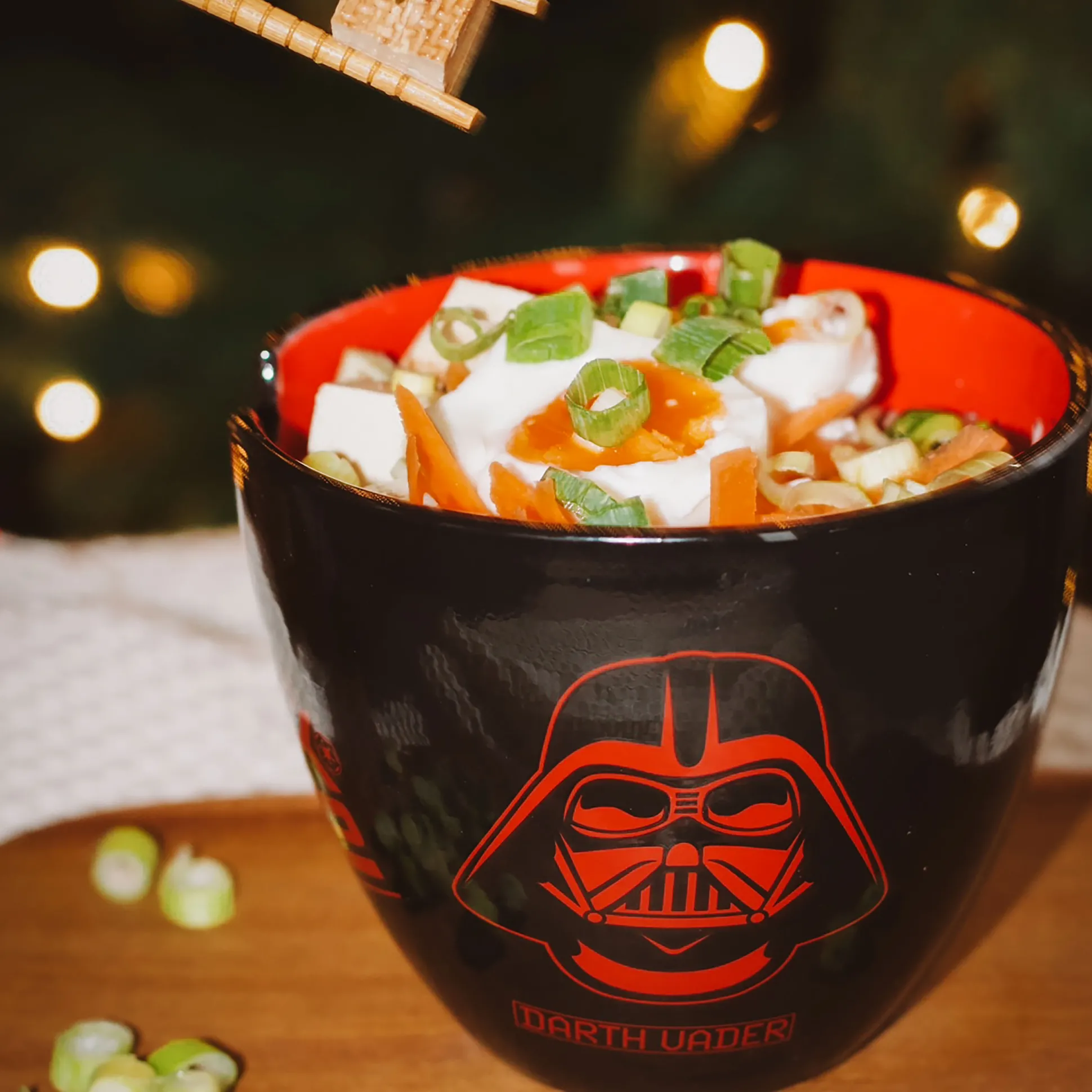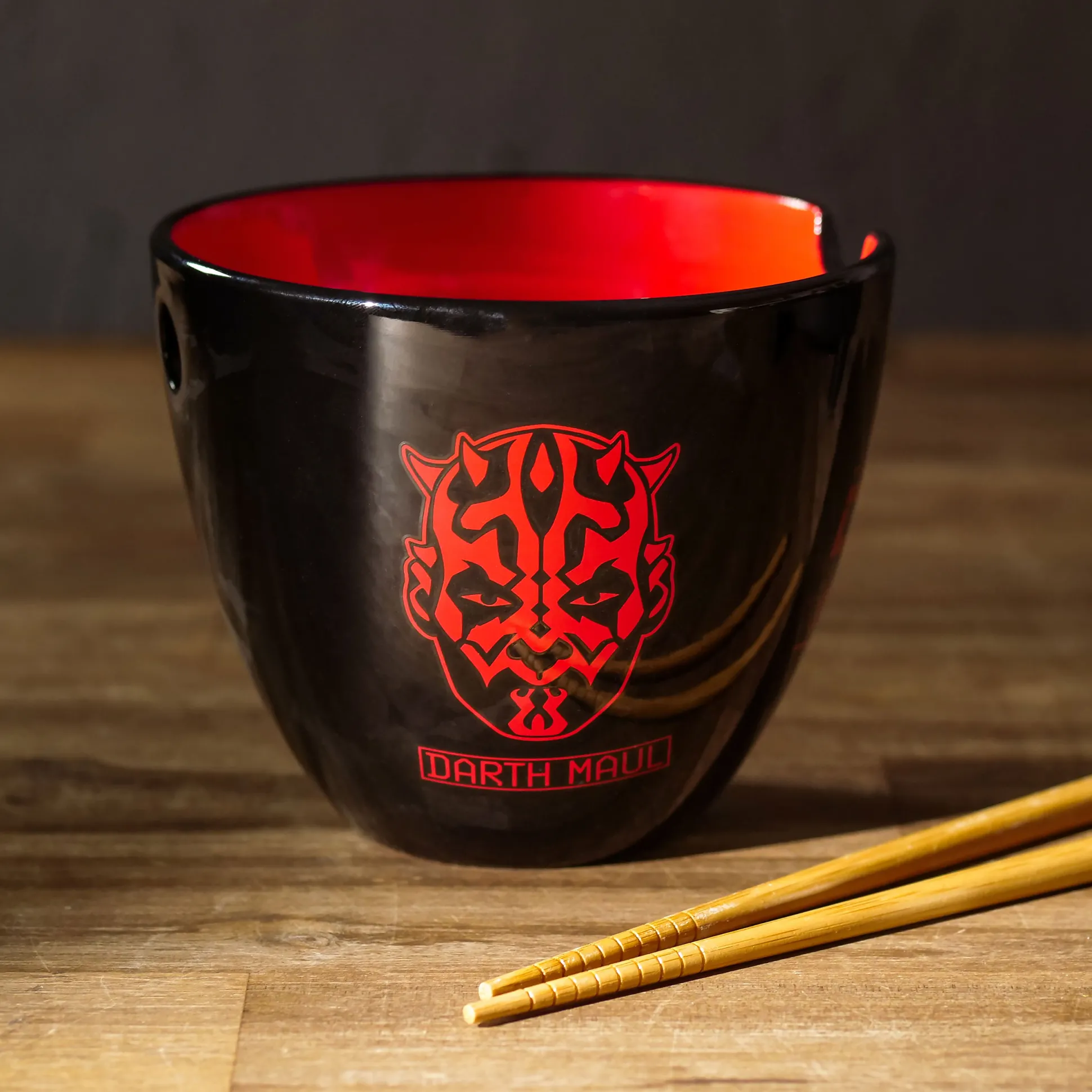 - met kom en eetstokjes, in Dark Side ontwerp met Darth Vader en Darth Maul