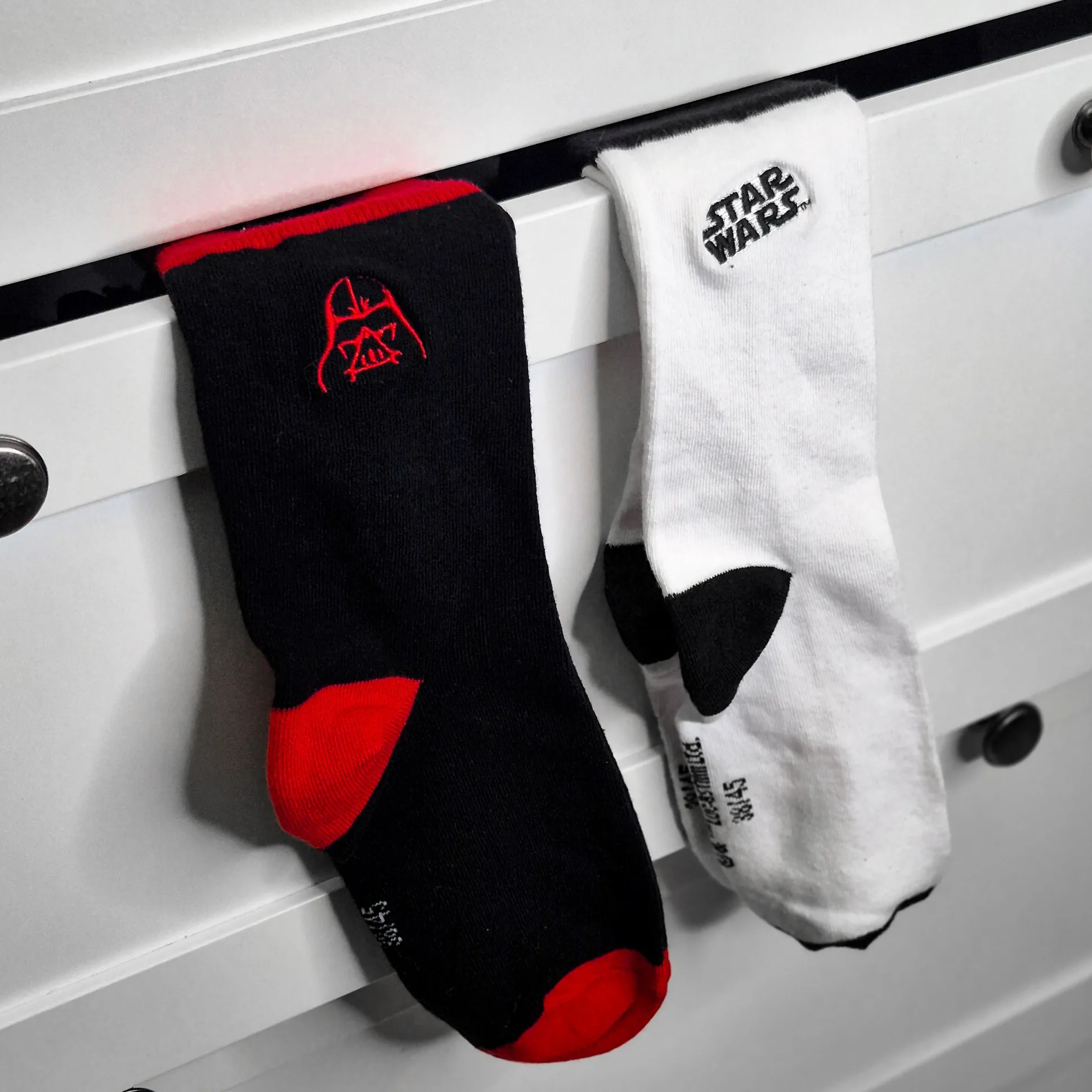 Met deze Star Wars sokken set van 2 haal je de donkere kant rechtstreeks in je lade – inclusief Star Wars-logo en Darth Vader. Twee paar sokken, één duidelijke boodschap: wie deze sokken draagt, loopt niet, maar schrijdt als een Sith Lord door de woonkamer.