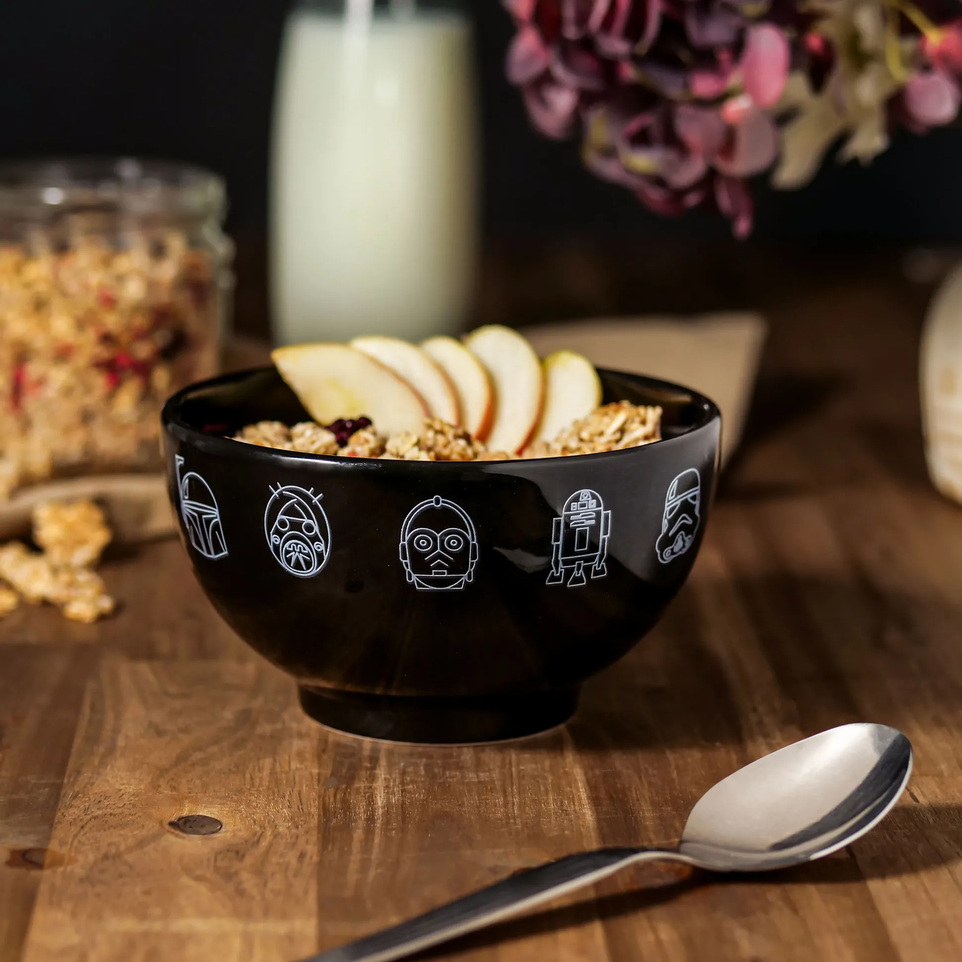 Ontbijt uit een sterrenstelsel ver, heel ver weg: met de Star Wars Icons mueslikom landt de Force rechtstreeks op je tafel. Officieel gelicenseerd en rondom bedrukt met het logo en iconen — Chewbacca, R2-D2, Yoda en Darth Vader — klaar om je cornflakes te beschermen tegen de duistere kant van de slaperigheid.