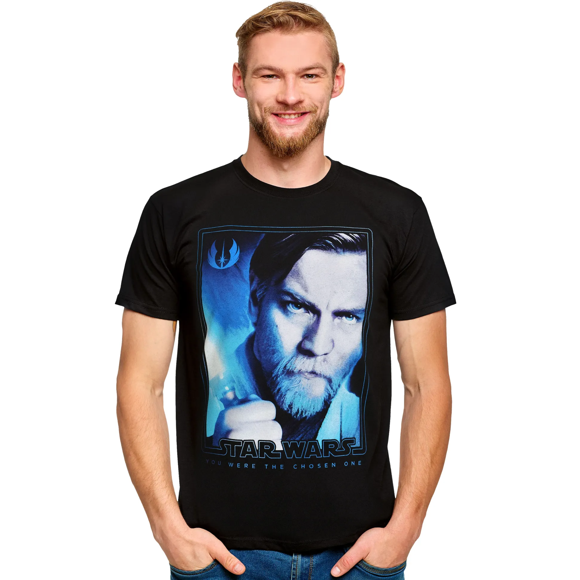Hello there. Jouw nieuwe hoop voor het perfecte fan‑shirt is gearriveerd: het officieel gelicentieerde Star Wars T‑shirt met een grote posterprint van Obi‑Wan Kenobi en het embleem van de Rebellenalliantie. Zwart, strak en klaar voor elke missie – van Tatooine tot de bank.