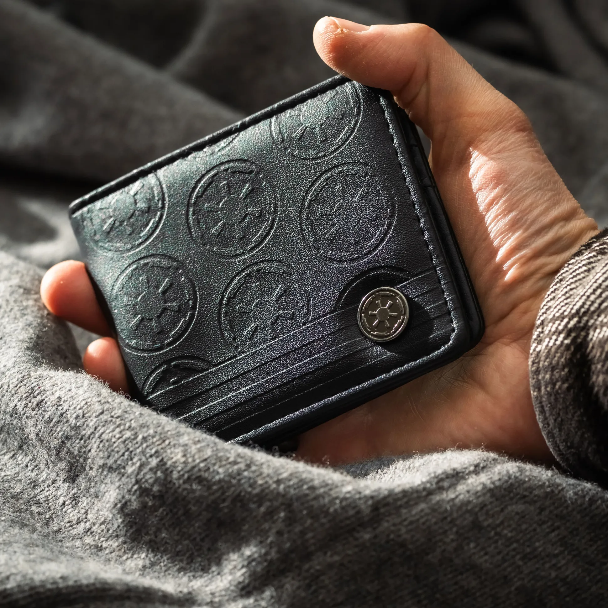 Voor iedereen die bij de kassa liever ‘Goedgekeurd door de Keizer’ hoort: deze officieel gelicentieerde Star Wars-portemonnee heeft in reliëf aangebrachte imperiale motieven, showt voorop het embleem van het Imperium en verbergt binnenin de tekst ‘Dark Side’. Aan de buitenkant strak zwart, van binnen is je loyaliteit duidelijk.