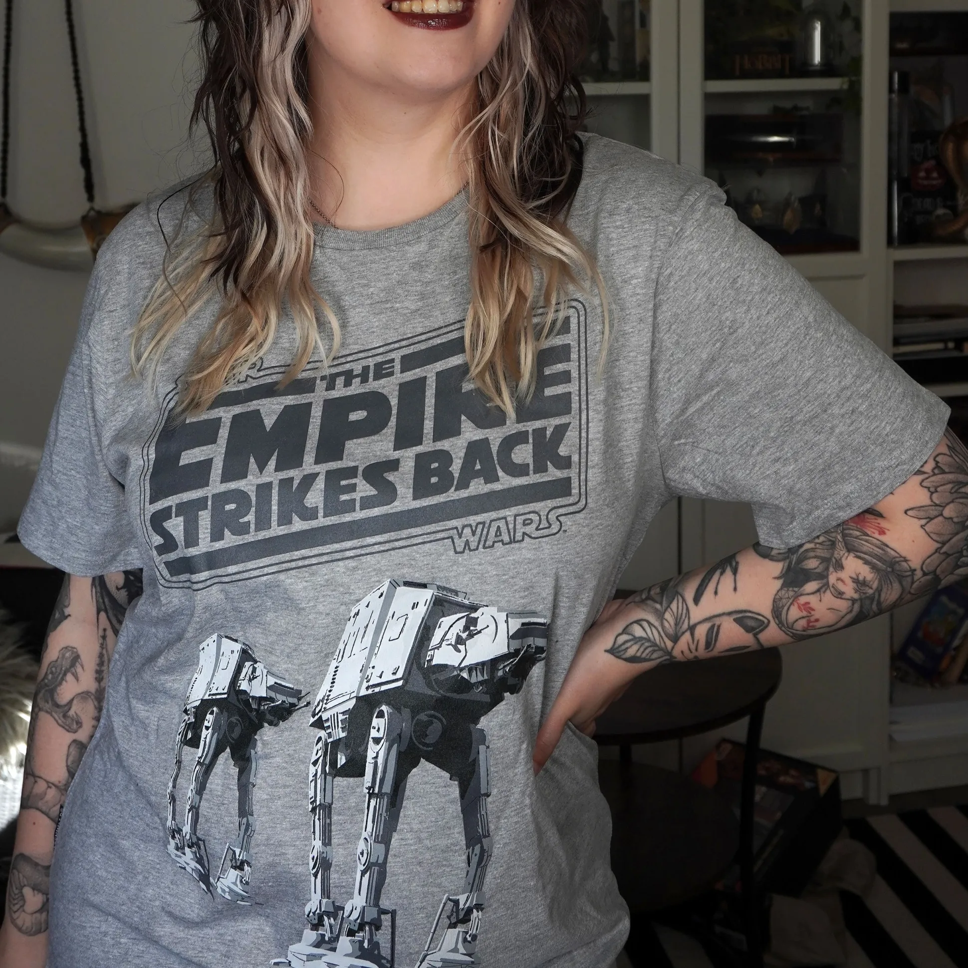 - grote frontprint met “The Empire Strikes Back”