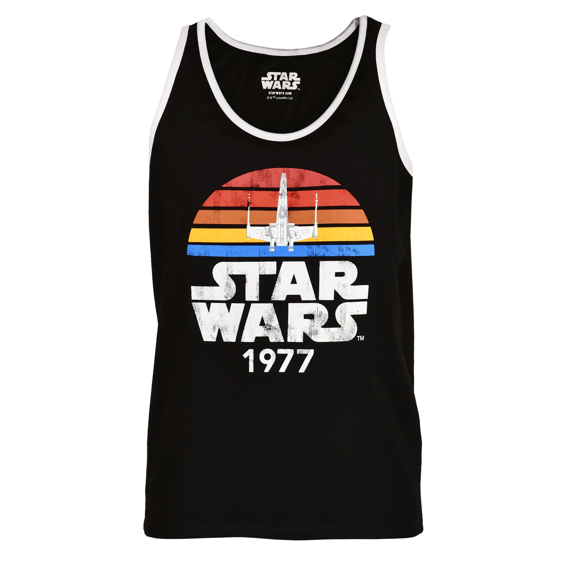 In 1977 begon het allemaal — en deze tanktop brengt die originele Star Wars-vibe zo op je borst. De grote frontprint laat de X-wing zien in echte ’77-retrostijl met een verweerde distressed look — alsof hij al een paar Kessel-runs achter de rug heeft. Officieel gelicentieerd, van hoge kwaliteit en tijdloos zwart — klaar voor filmavond, een con of gewoon elke dag. Rechte pasvorm met een comfortabele ronde hals: licht, easy en een duidelijk statement aan welke kant van de Force je staat.