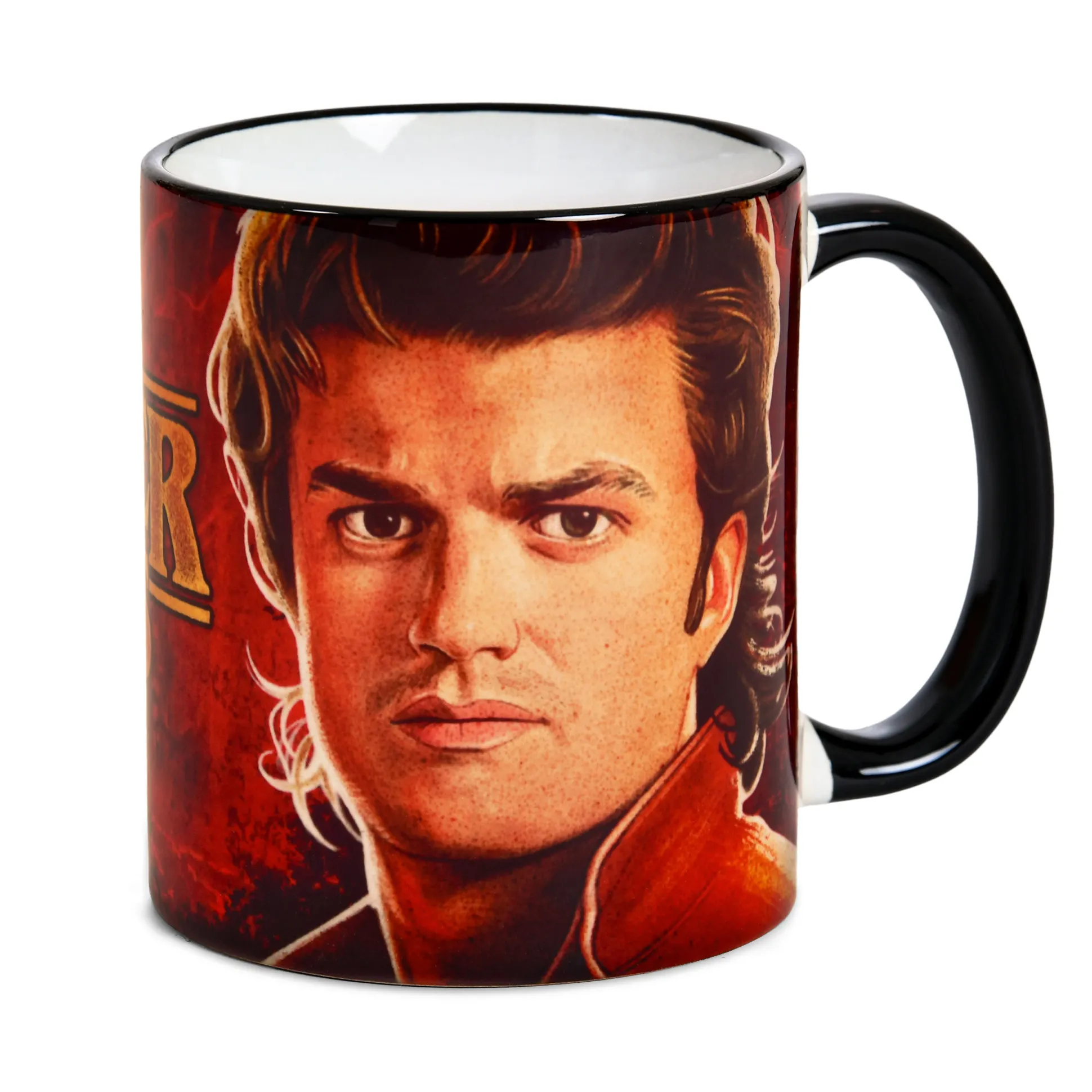 Voor iedereen die gelooft in groot haar, nog grotere harten en koffie: Steve staat voor je klaar. Deze officieel gelicentieerde Stranger Things‑mok toont Steve Harrington in de stijl van de Final Season (seizoen 5) en brengt Hawkins‑vibes rechtstreeks je keuken in. Inhoud 320 ml – genoeg voor een heldenslok vóór je volgende Demogorgon‑dienst. En omdat het dagelijks leven al pittig genoeg is, is de mok geschikt voor vaatwasser en magnetron. Kort gezegd: robuust, stijlvol, ready for action. Het perfecte cadeau voor fans die Hawkins’ favoriete babysitter aan de ontbijttafel willen – of gewoon een statement voor jezelf.