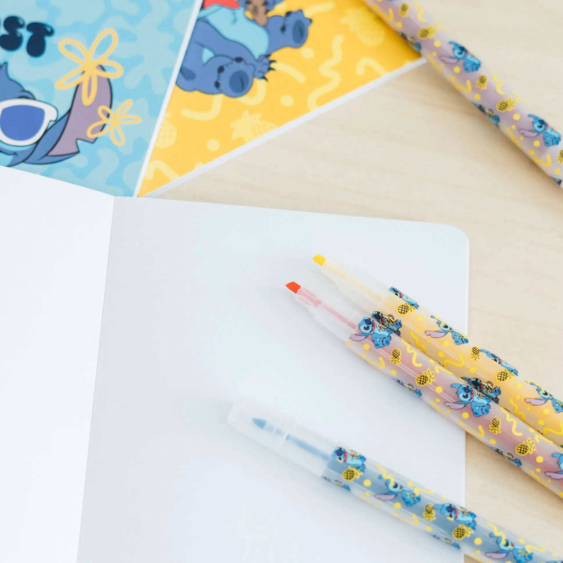- bevat 4 vezelpennen, 2 metalen clips, 6 sticky notes in Stitch design