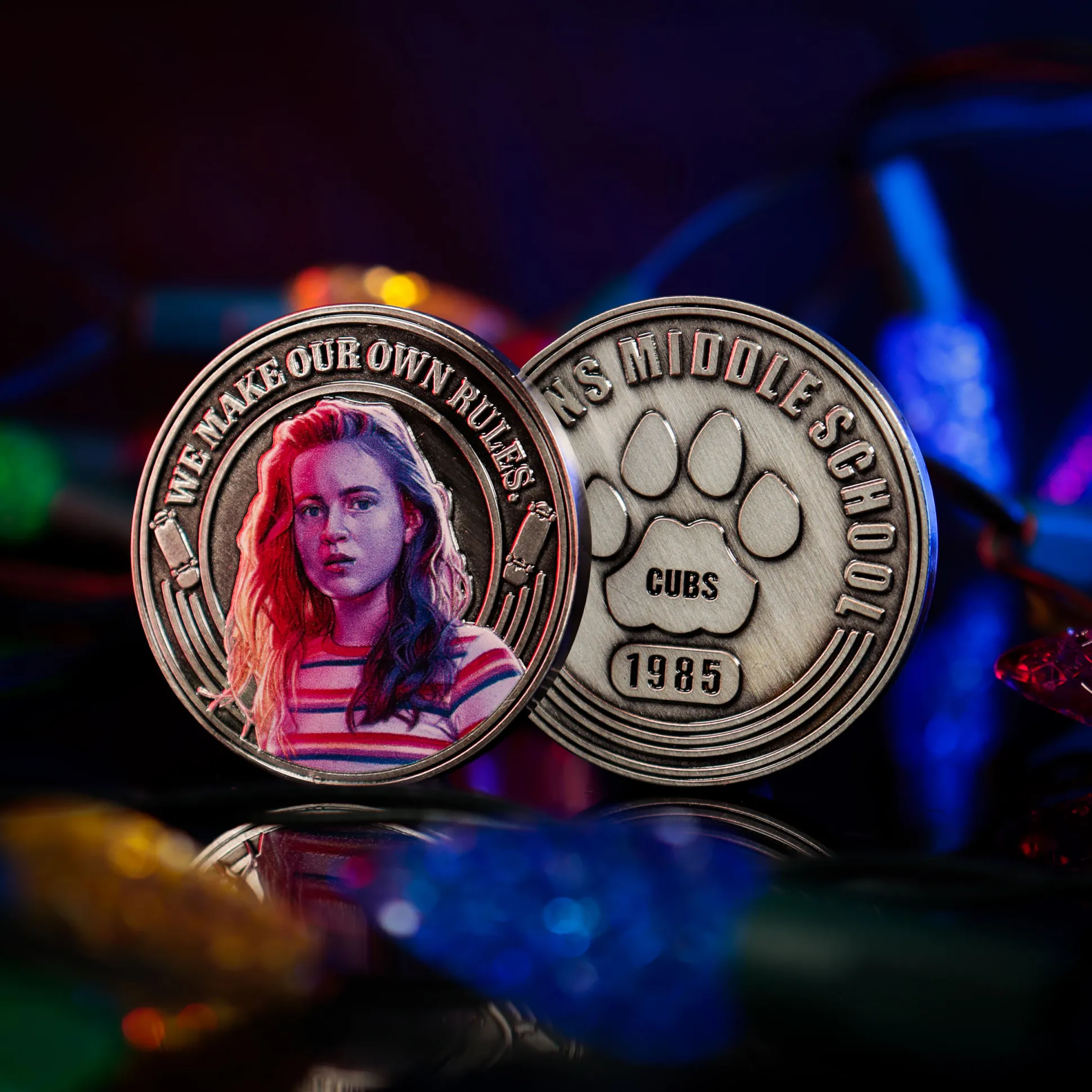 - set bevat: Hawkins Middle School Class of ’85 jaarboek en verzamelmunten