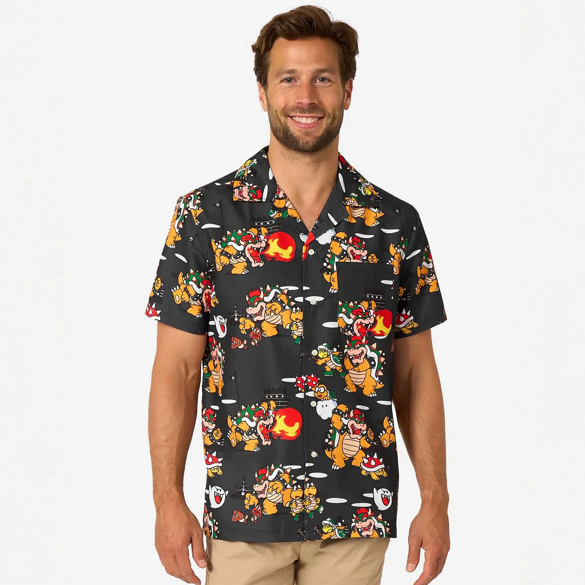 In plaats van „Pas op voor Bowser!” ga jij meer voor „Zo, dat ziet er goed uit”. Dit officieel gelicentieerde Nintendo overhemd heeft een recht, relaxed model met korte mouwen, knoopsluiting en opgezette borstzak, plus een all-over Bowser print die net zo veel chaos belooft als de koning van de Koopa’s zelf.