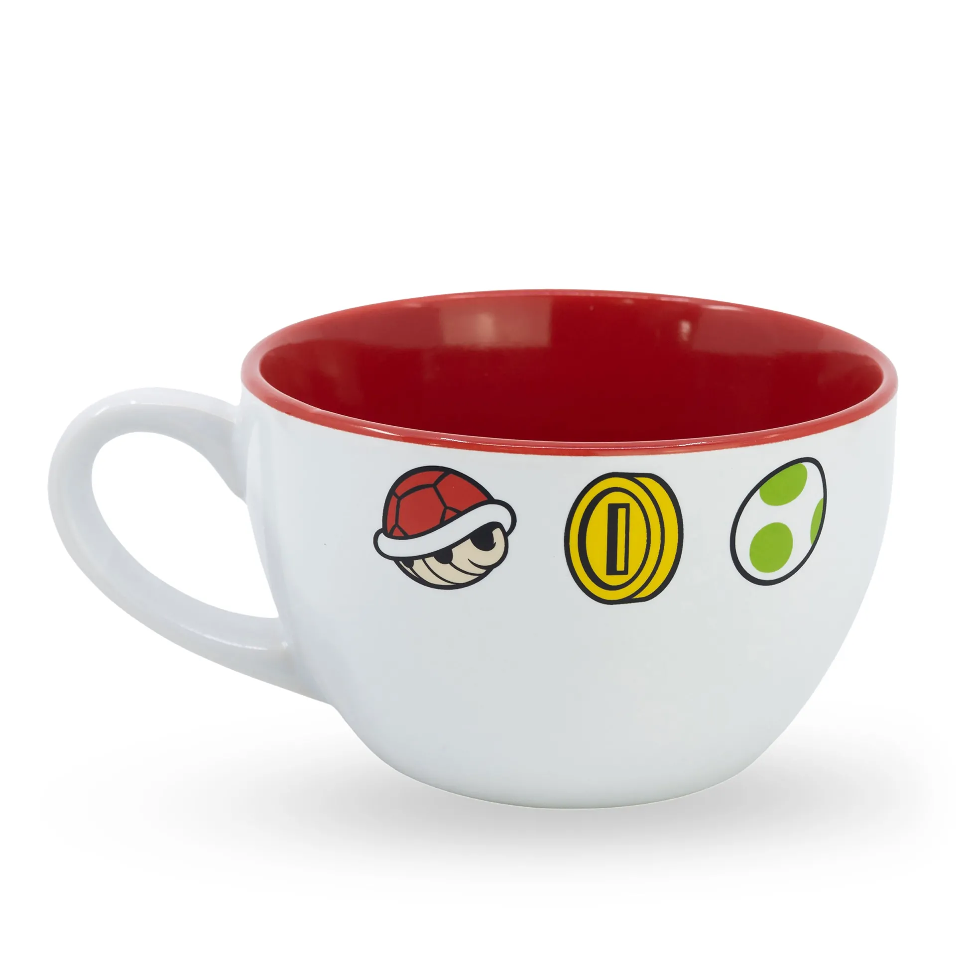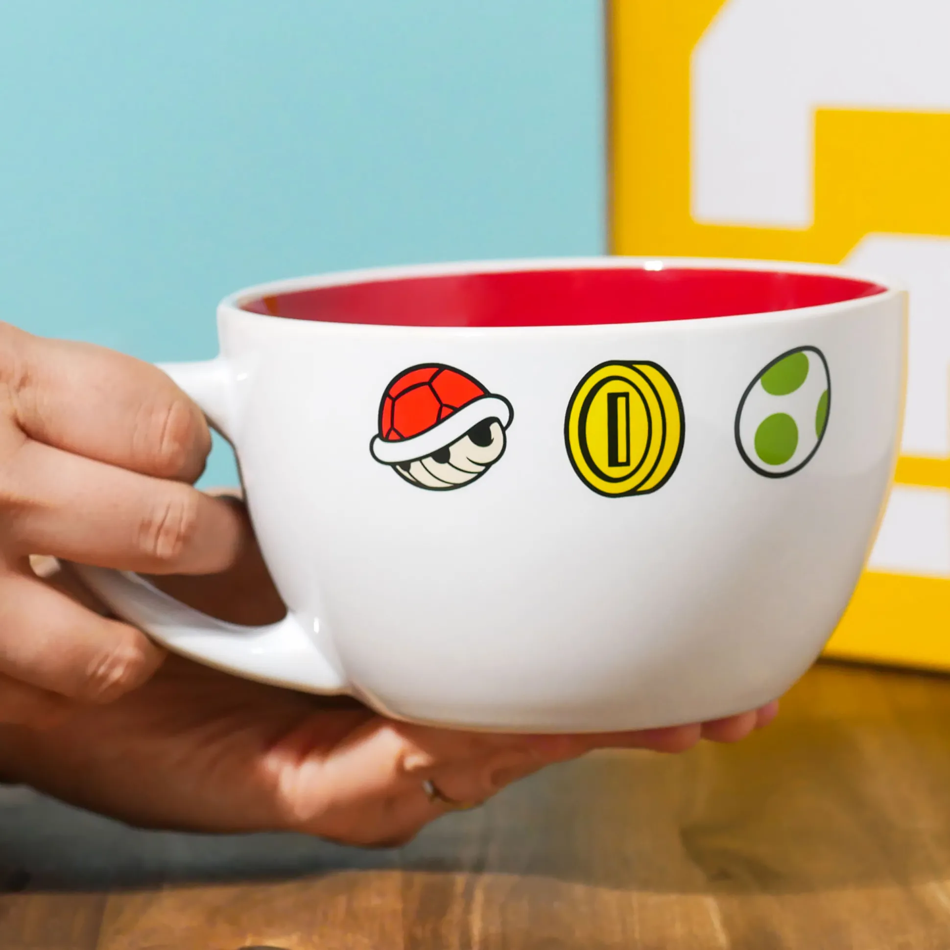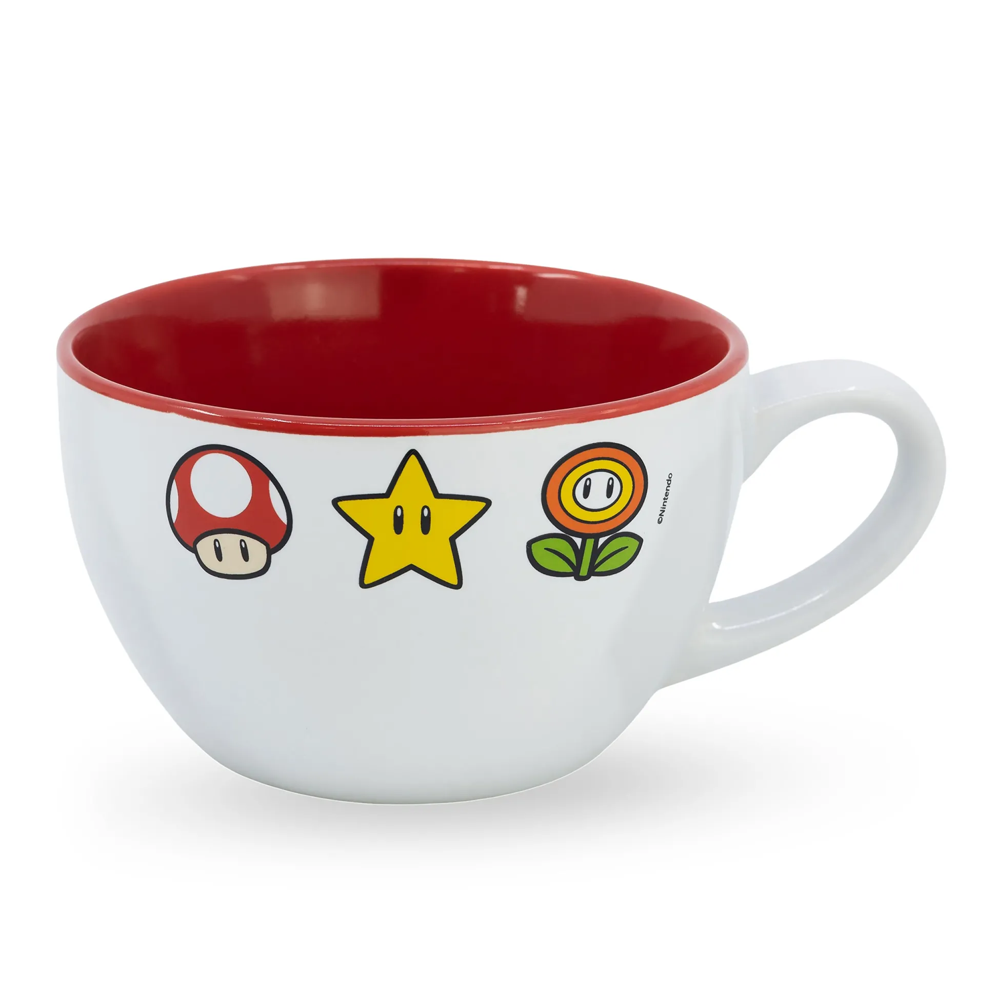 Toe aan een power‑up? Deze officieel gelicentieerde Nintendo Super Mario mok brengt de Paddenstoelenrijk‑vibe naar je bureau met het logo en iconen als de Vuurbloem en Superpaddenstoel. In XXL‑formaat met 630 ml bevat ’ie genoeg brandstof voor lange speelsessies, maandagquests en eindbaas‑meetings. Wit aan de buitenkant, rood van binnen — net zo opvallend als een ?‑blok in Wereld 1‑1. En omdat niemand tijd heeft voor een echte game over, is ’ie vaatwas‑ en magnetronbestendig.