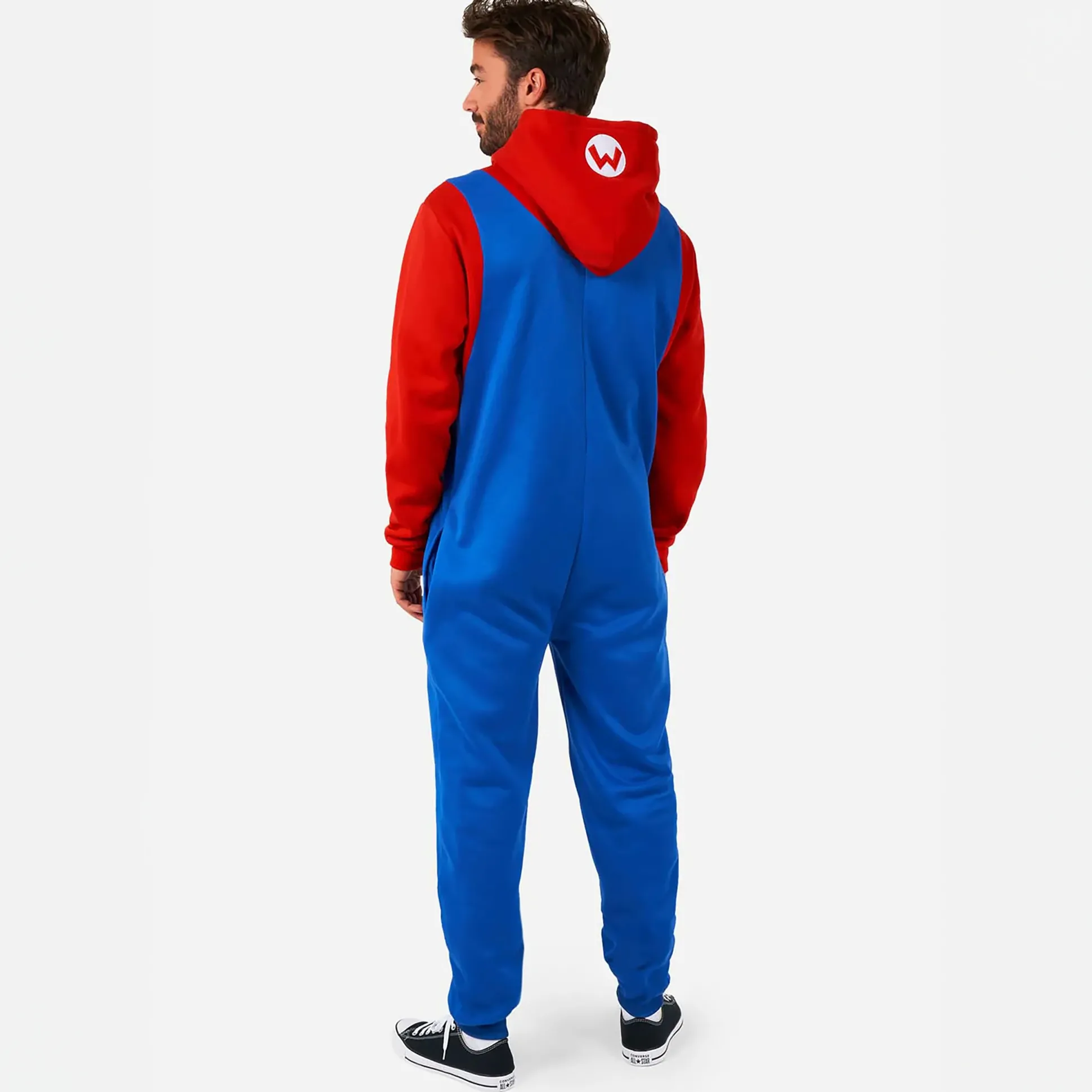 De zachte, pluche overall in klassiek Super Mario-design komt in fel rood en blauw, met een capuchon (voor de ultieme Mario-look) en twee steekzakken voor je telefoon, snacks of extra levens. Gewoon inschieten, dicht ritsen en je bent klaar voor gamemarathons, filmavonden of gewoon lui bankhangen met stijlbonus.