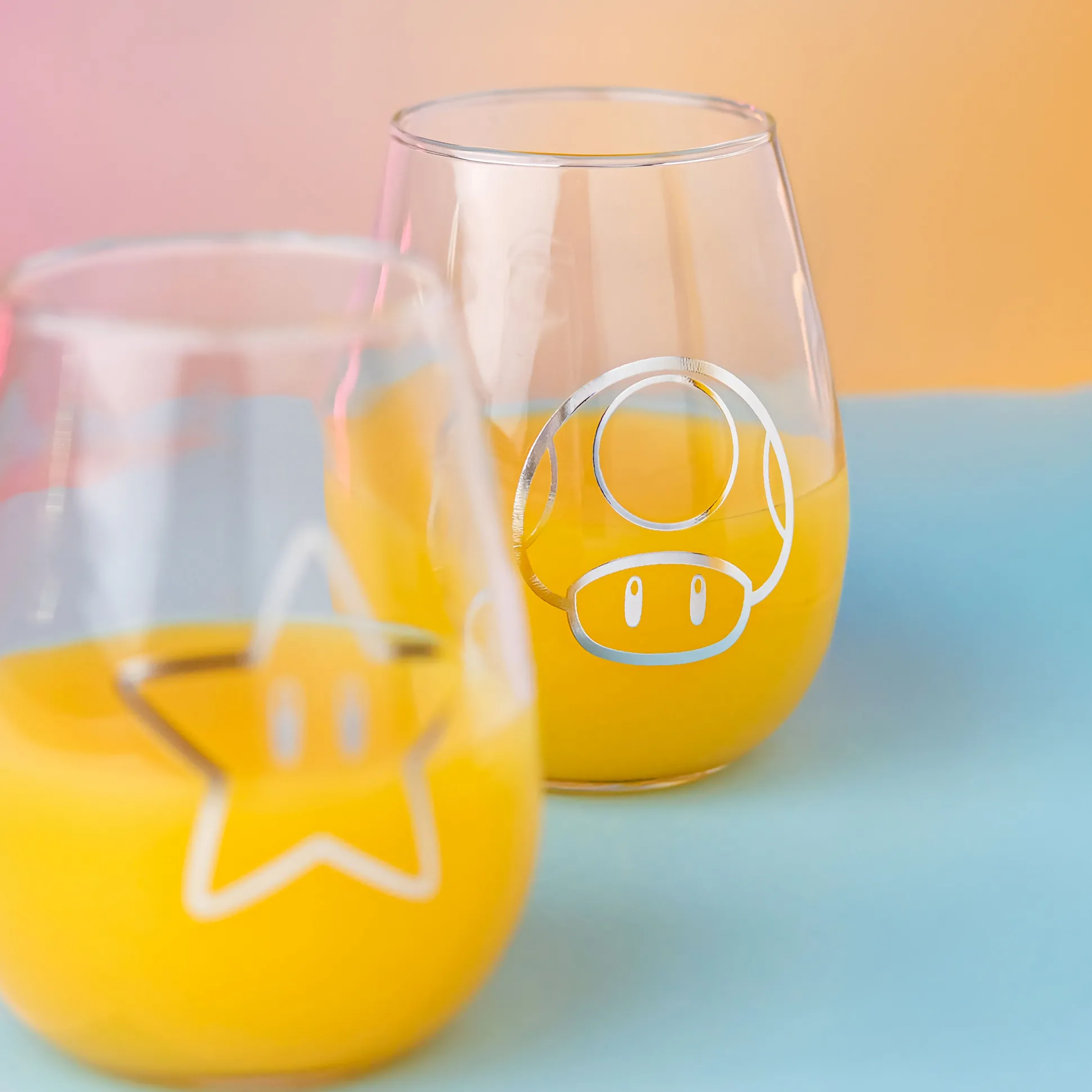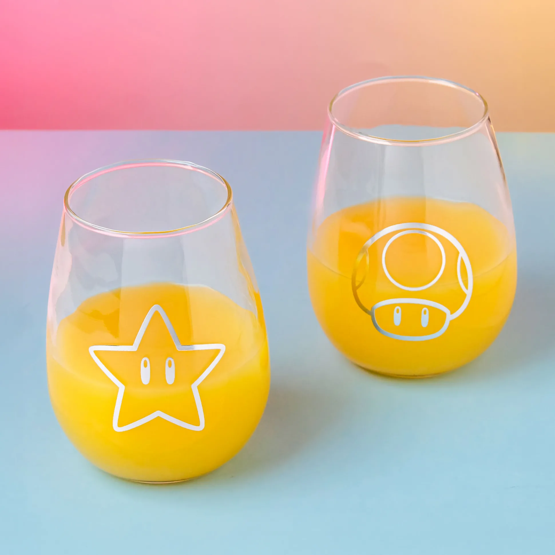 Geef je keuken een level-up! Met deze officieel gelicentieerde Nintendo set van 2 glazen heb je Super Star en Super Mushroom letterlijk in de hand. Elk glas is 11,5 cm hoog, heeft een inhoud van 500 ml en toont Question Block, Mushroom, Coin en Star plus het Super Mario-logo. Perfect voor bossfights tegen de dorst, co-opavonden en als cadeau voor Nintendo-fans. Let op: niet geschikt voor vaatwasser of magnetron — met de hand afwassen, anders is het game over.