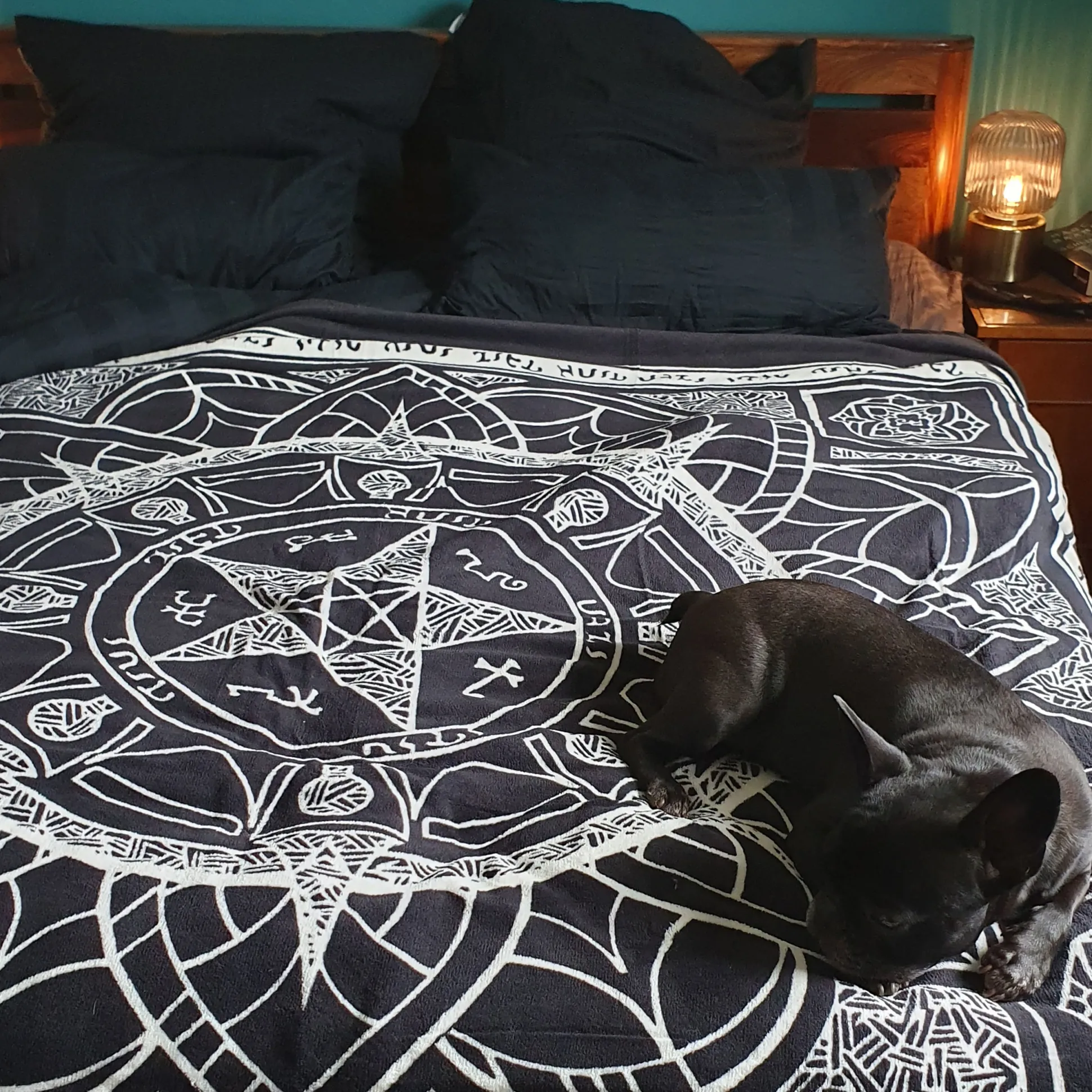 Exorcisme-abonnement nodig? Niet met deze officieel gelicentieerde Supernatural fleece deken! Met het iconische Devil’s Trap-symbool uit de serie bescherm je (en je snackvoorraad) in stijl, verpakt in 180 x 210 cm puur knus comfort. Zo zacht dat zelfs Crowley jaloers wordt – uiteraard in stoer zwart-wit. Of je nu bingewatcht of dut, met deze deken is jouw comfort bovennatuurlijk goed. Geen demon steekt nog zijn hoofd om de hoek, tenzij jij daar zin in hebt!