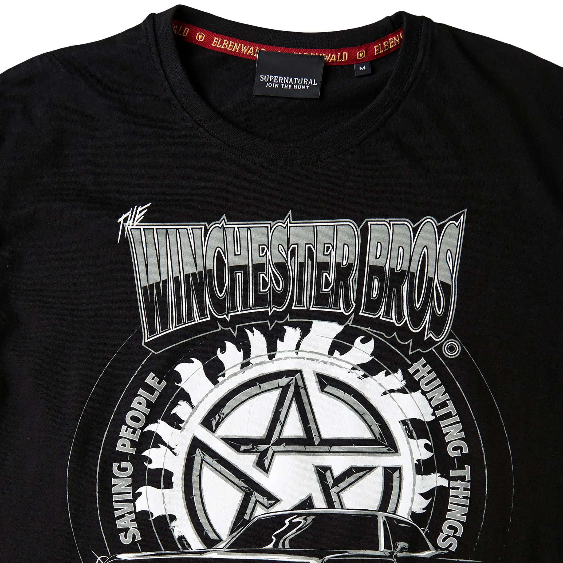Zout en ijzer houden demonen op afstand, maar alleen het legendarische Winchester Bros T-shirt verjaagt saaie kledingstukken uit je kast! Dit officiële Supernatural shirt met opvallende frontprint laat iedereen zien: jij hoort bij Team Sam & Dean—of je nu jacht maakt op geesten of op zoek bent naar een flinke punt taart. Klassiek zwart, relaxte rechte pasvorm en coole ronde hals: hier ontmoeten fanhart en streetstyle elkaar. Voor een bovennatuurlijk gave look heb je geen pentagram nodig, alleen een Winchester-shirt!