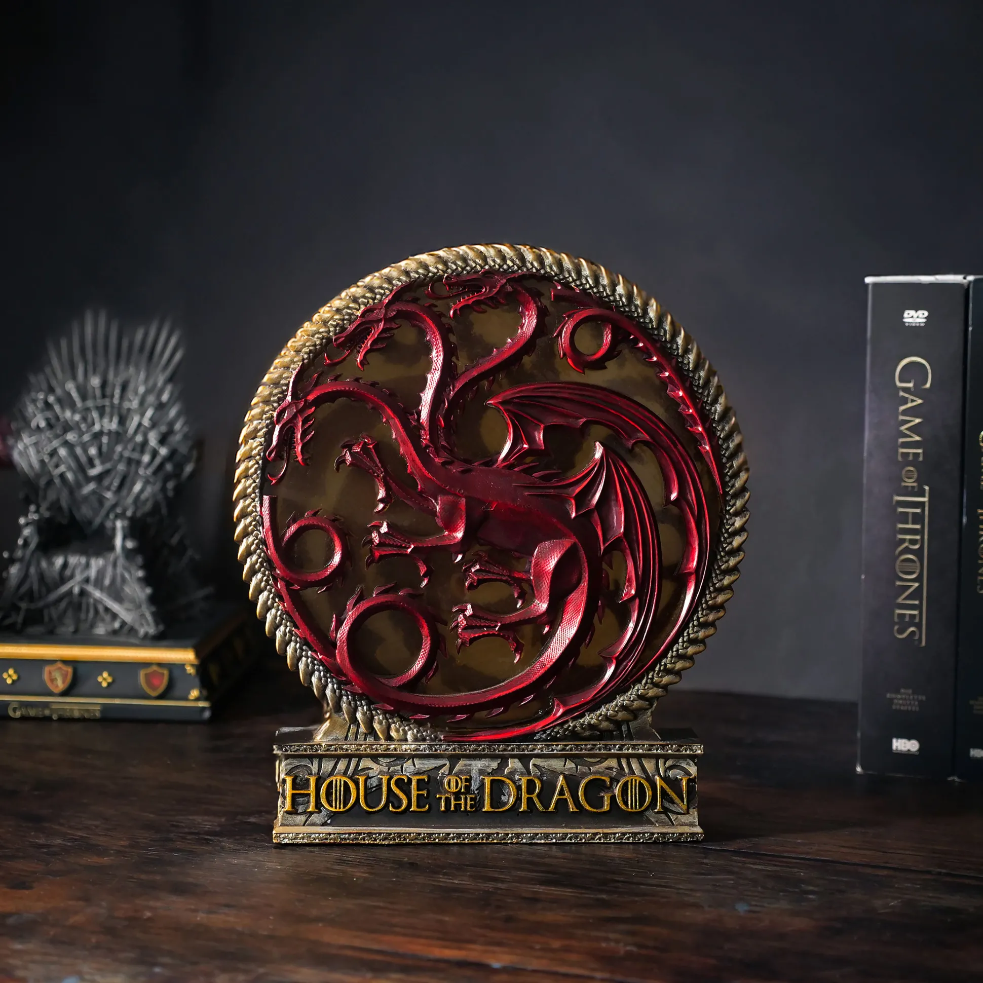 Als je hart op drakentempo klopt, verdient je bureau een passend baken: de Targaryen-wapen tafellamp deluxe uit House of the Dragon. Officieel gelicenseerd, rijk gedetailleerd van hoogwaardige hars en met de hand beschilderd – koninklijke vibes voor thuis.